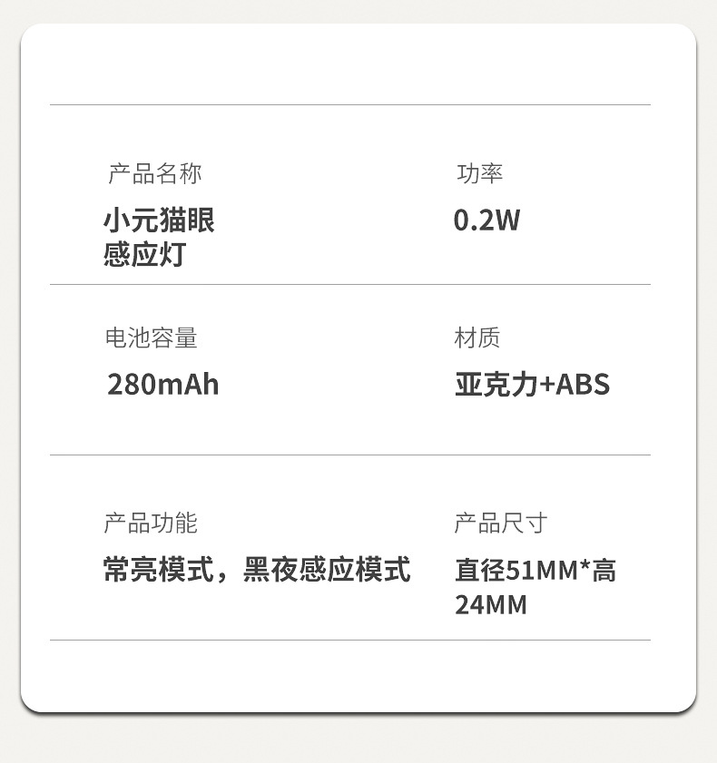 • 작은 원형 고양이 눈 센서 조명 [차가운 백색광]
