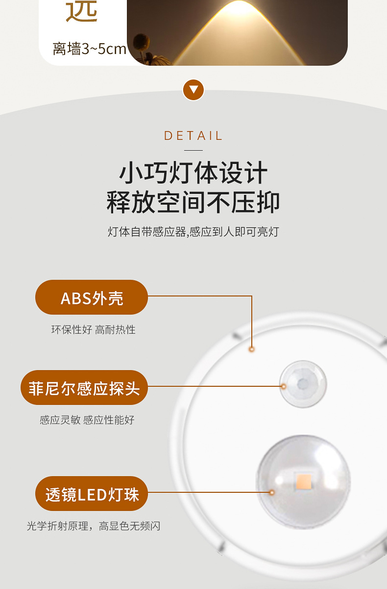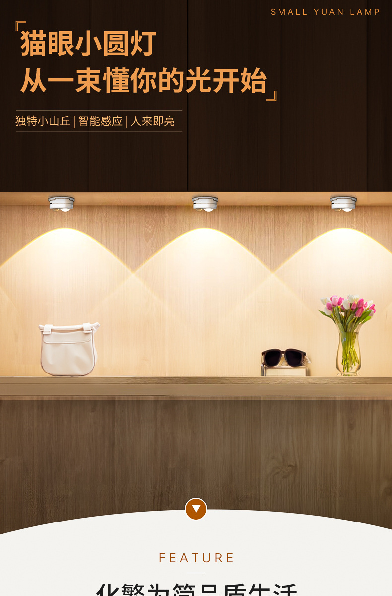 • 작은 둥근 고양이 눈 센서 조명 [따뜻한 노란색 빛]