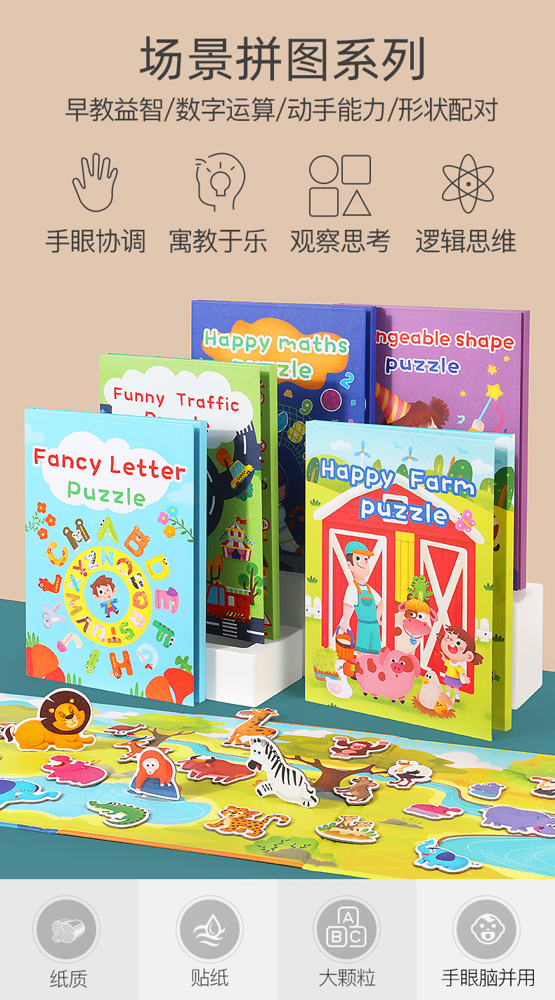 어린이 자기 고급 퍼즐 아기 조기 교육 접이식 퍼즐 책 1-6 세 소년과 소녀 나무 장난감 도매스토어 가기