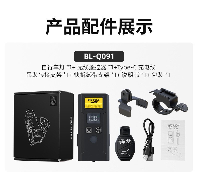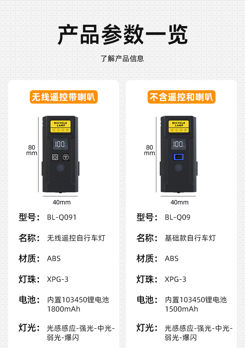 국경 새로운 자전거 빛 무선 블루투스 원격 제어 스마트 라이트 혼 USB 충전 야간 승마 장비