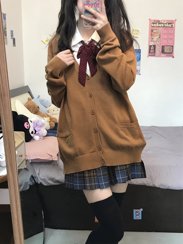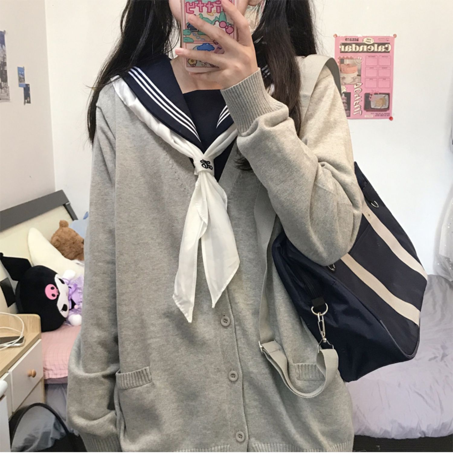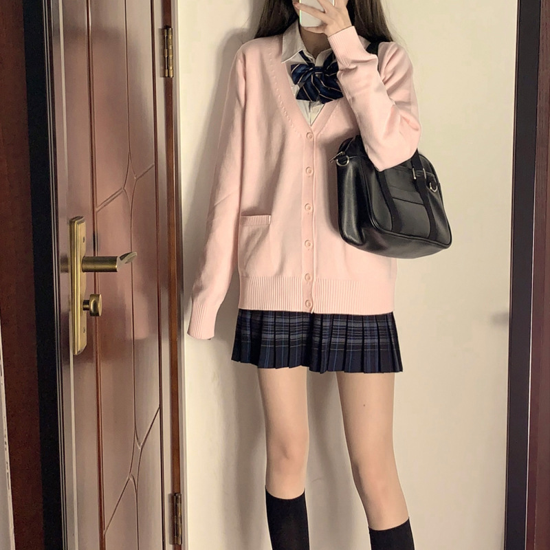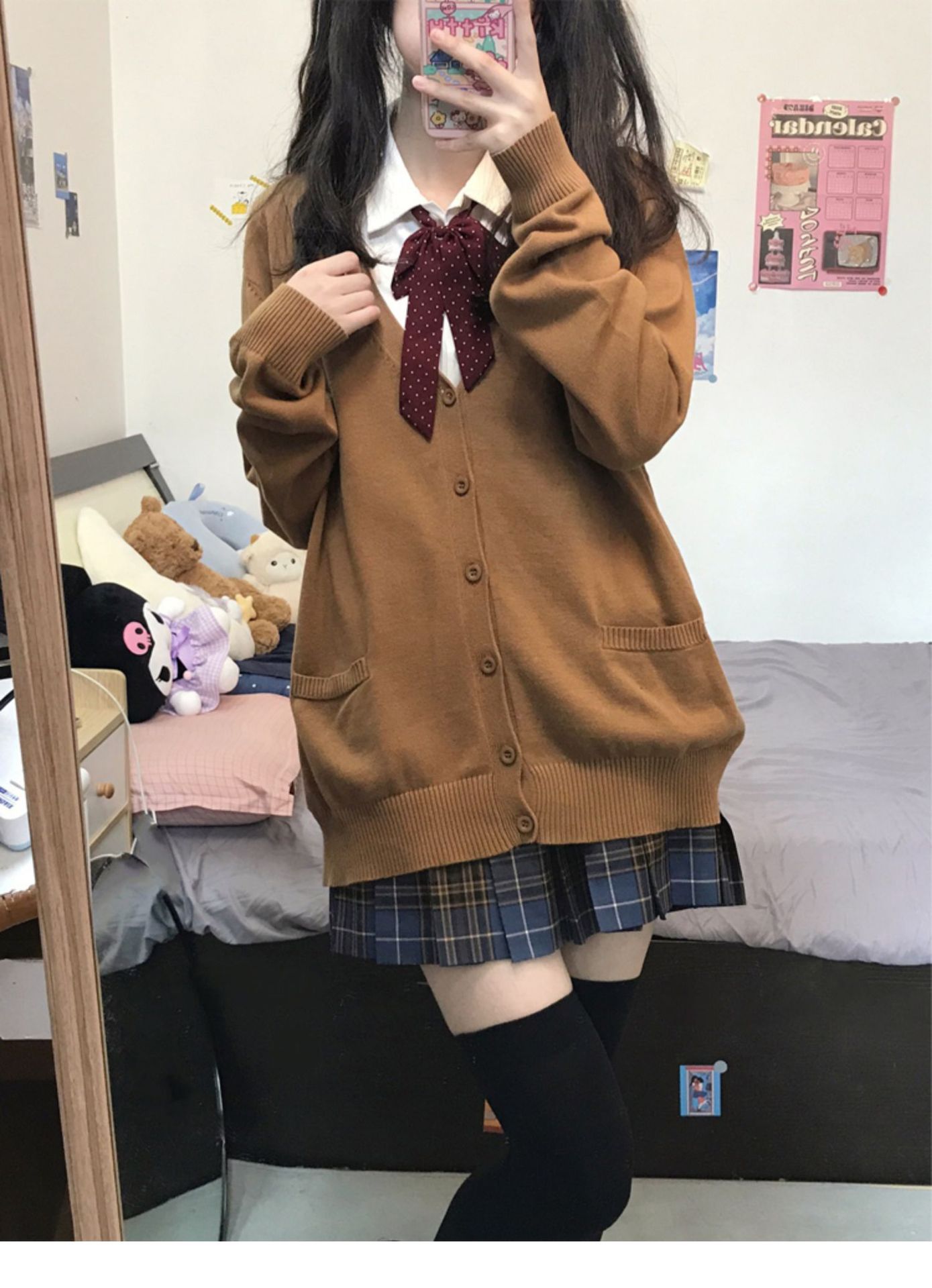 2024 새로운 jk 스웨터 코트 카디건 봄과 가을 일본 대학 스타일 학교 유니폼 긴 소매 니트 탑 여성스토어 가기