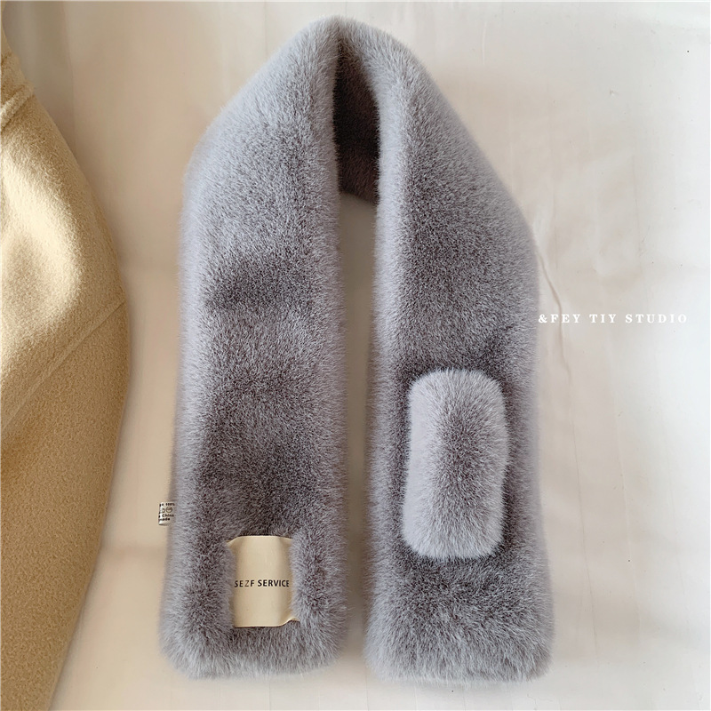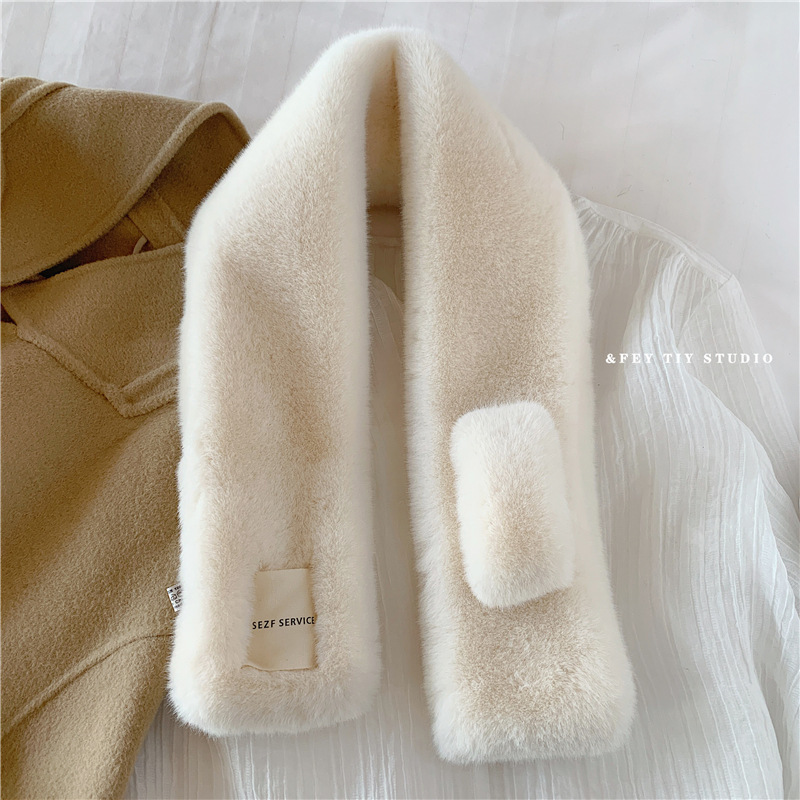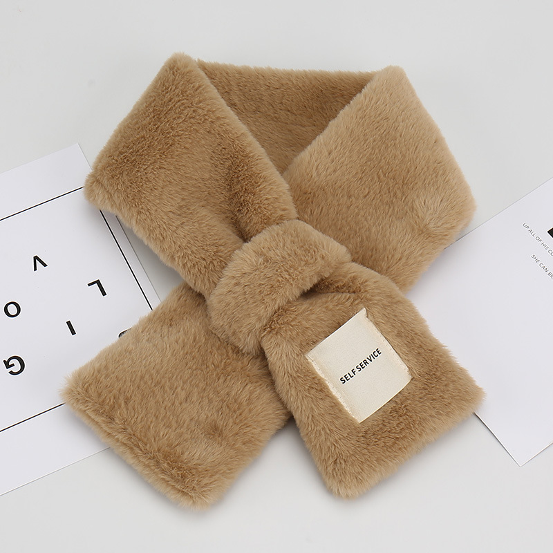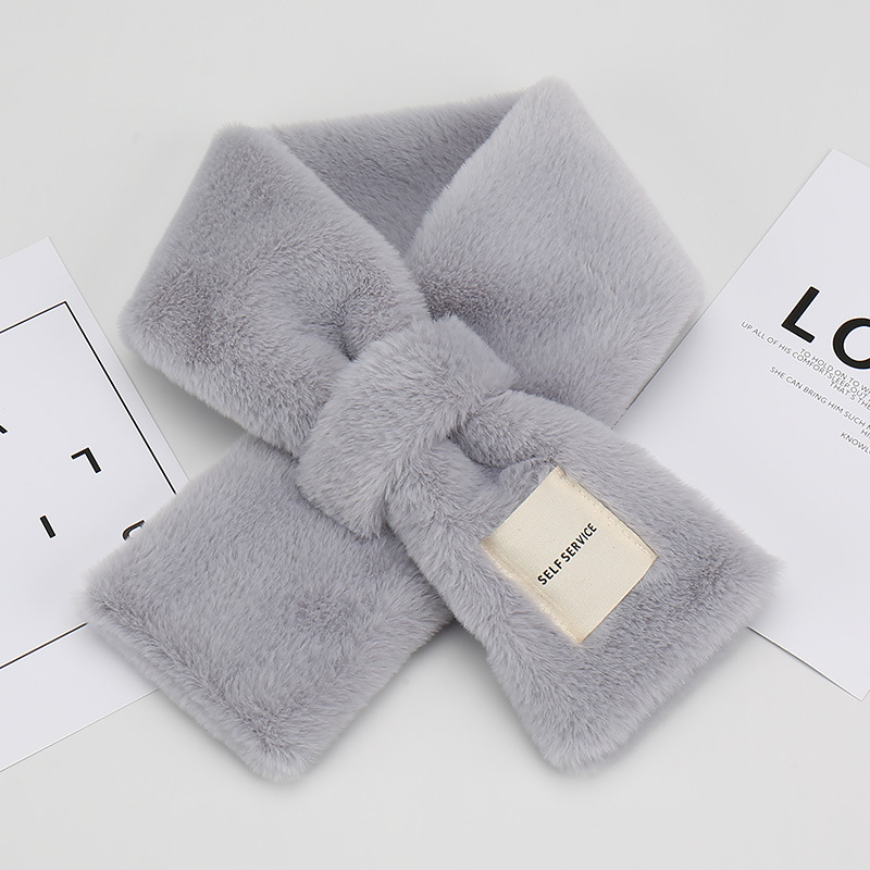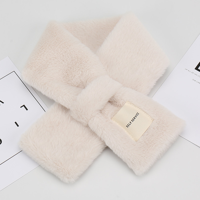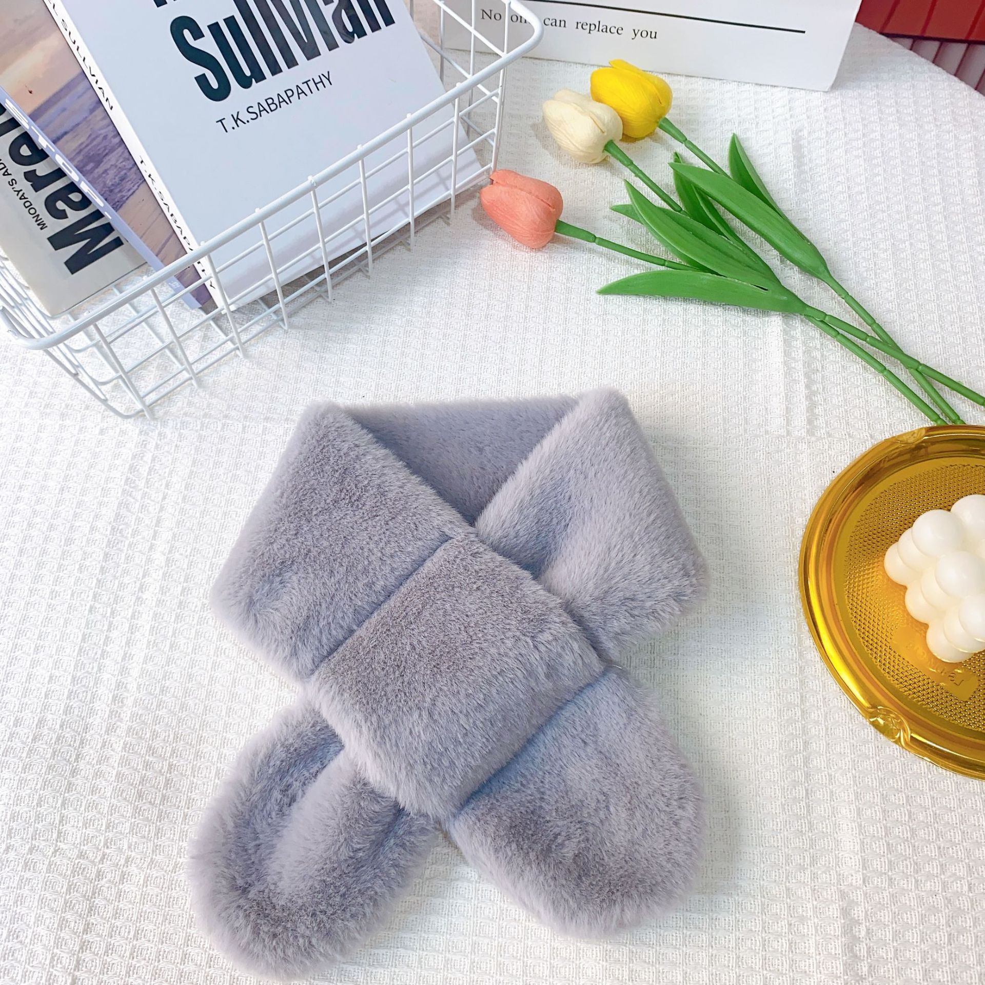 가을과 겨울 여성 모조 토끼 모피 봉제 스카프 부드러운 목 학생 여성 단색 크로스 따뜻한 두꺼운 한국 스타일 스카프스토어 가기
