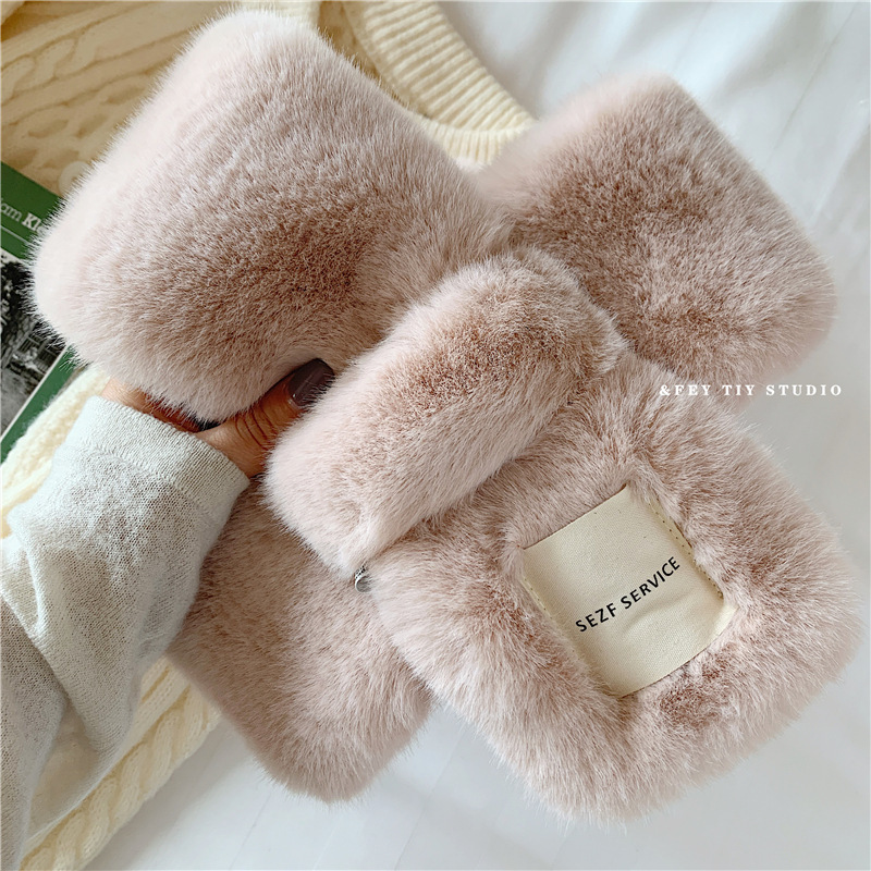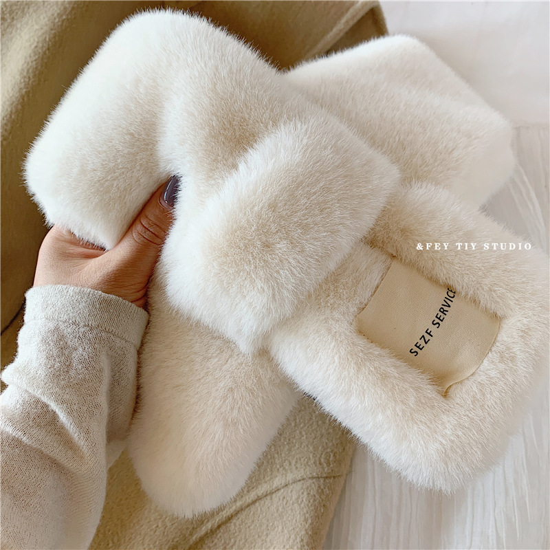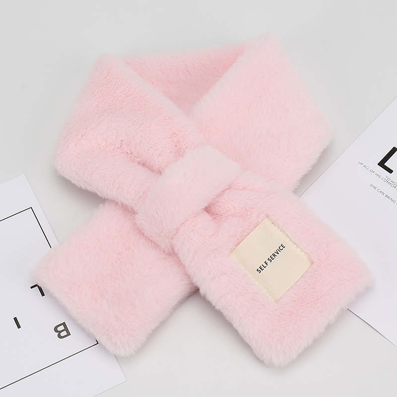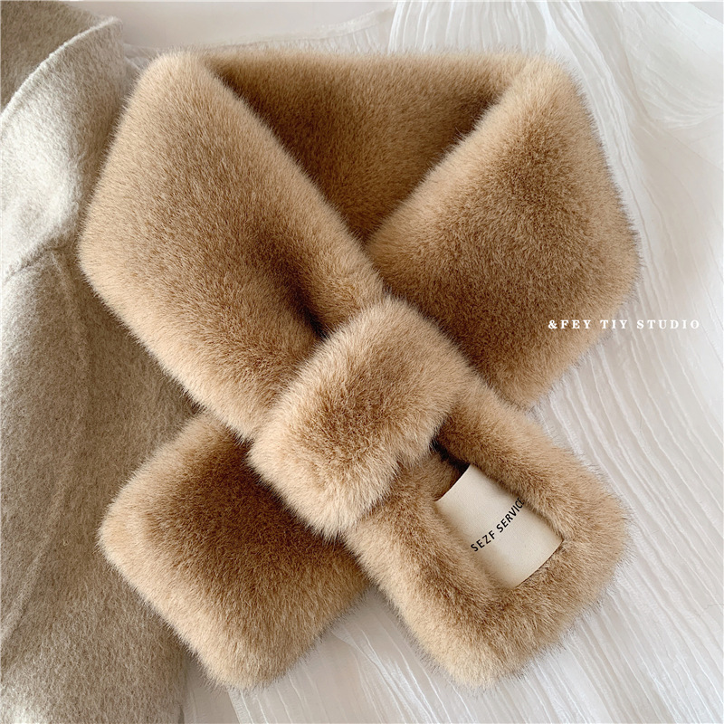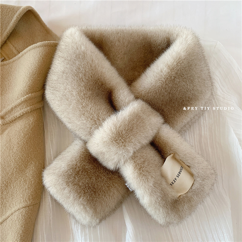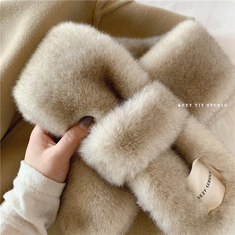 가을과 겨울 여성 모조 토끼 모피 봉제 스카프 부드러운 목 학생 여성 단색 크로스 따뜻한 두꺼운 한국 스타일 스카프