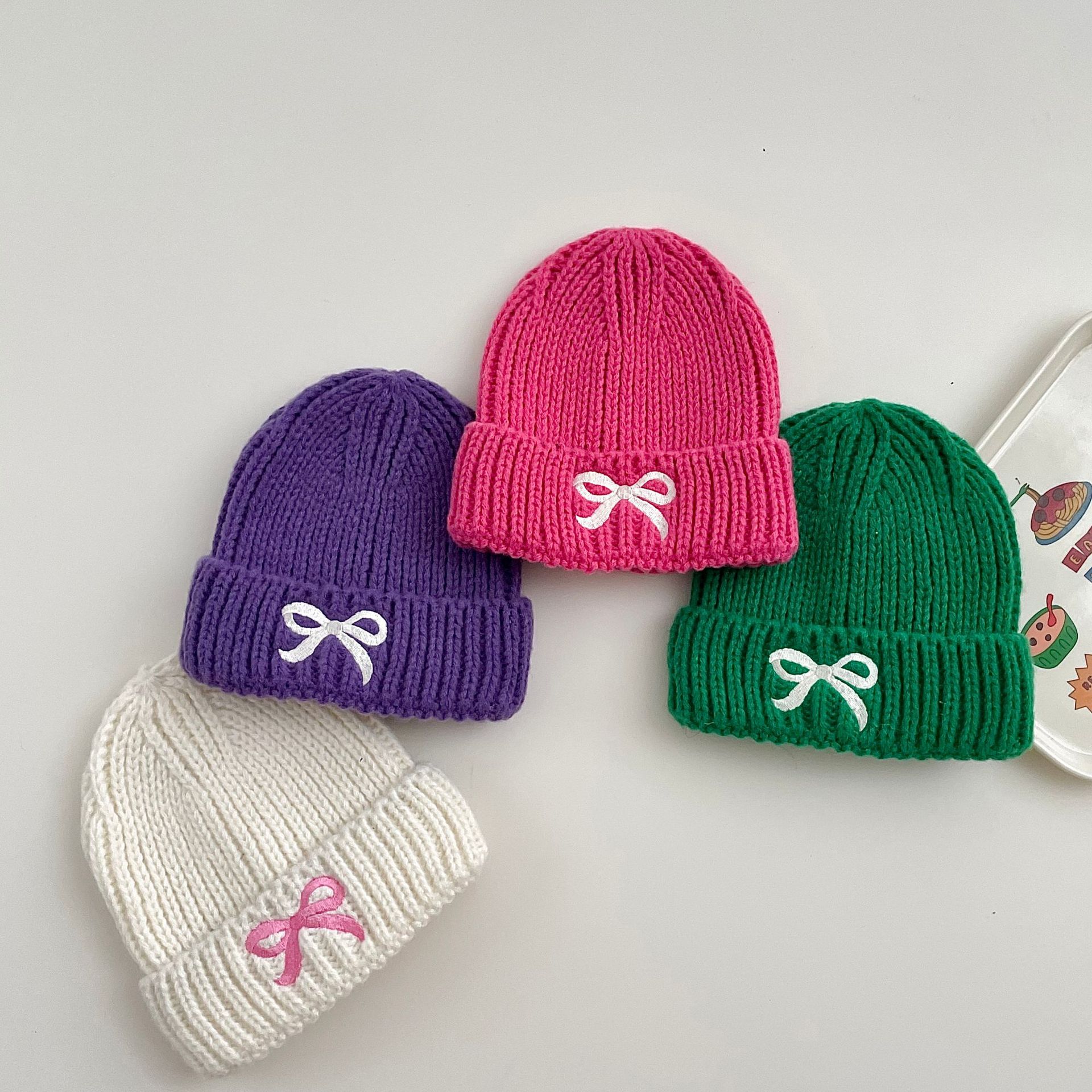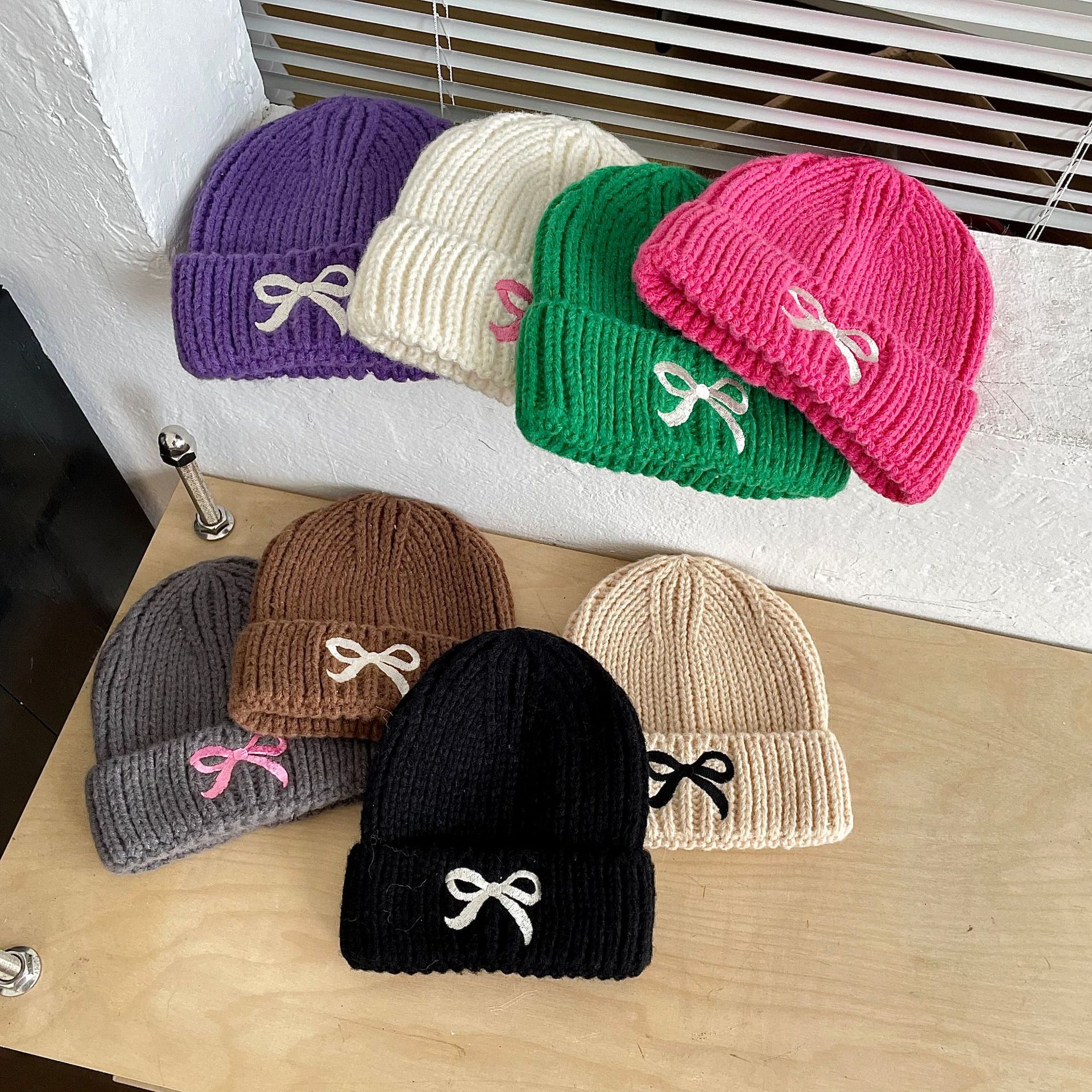 어린이 수놓은 활 모자 한국식 외국식 소년들과 소녀상 따뜻한 니트 모자 아기 트렌디 풀오버 모자스토어 가기