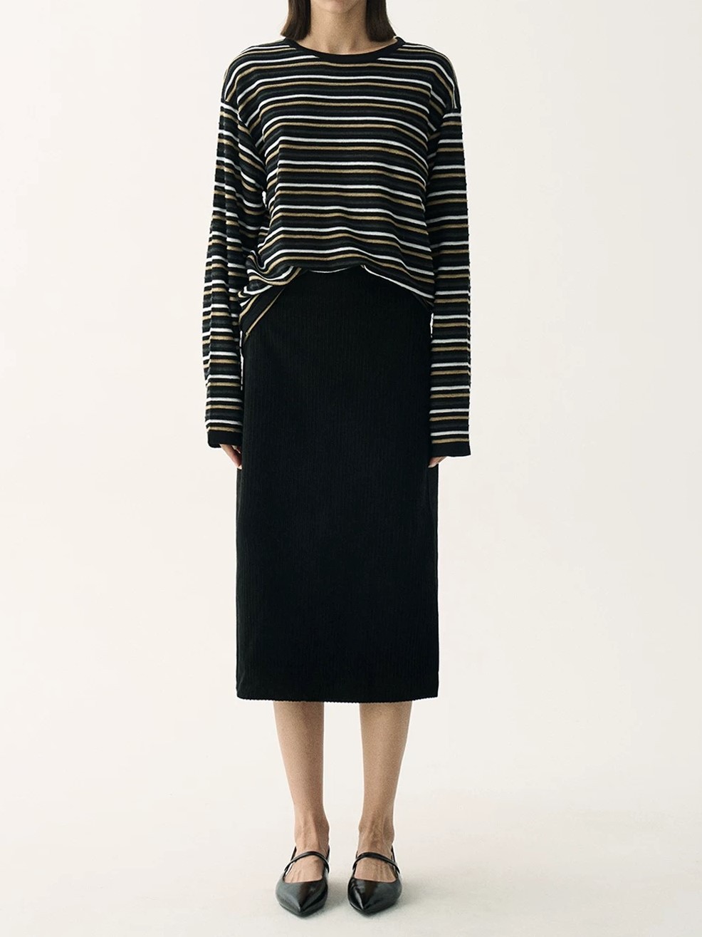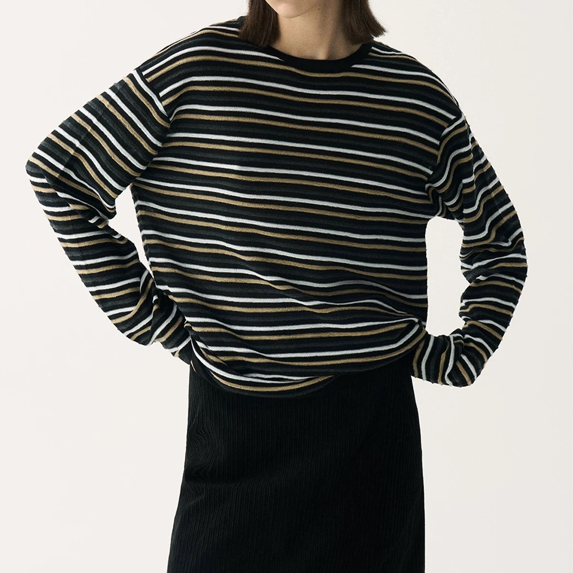 SS STUDIO 초가을 줄무늬 양모 스웨터 여성용 크루 넥베이스 스웨터 긴팔 티셔츠스토어 가기