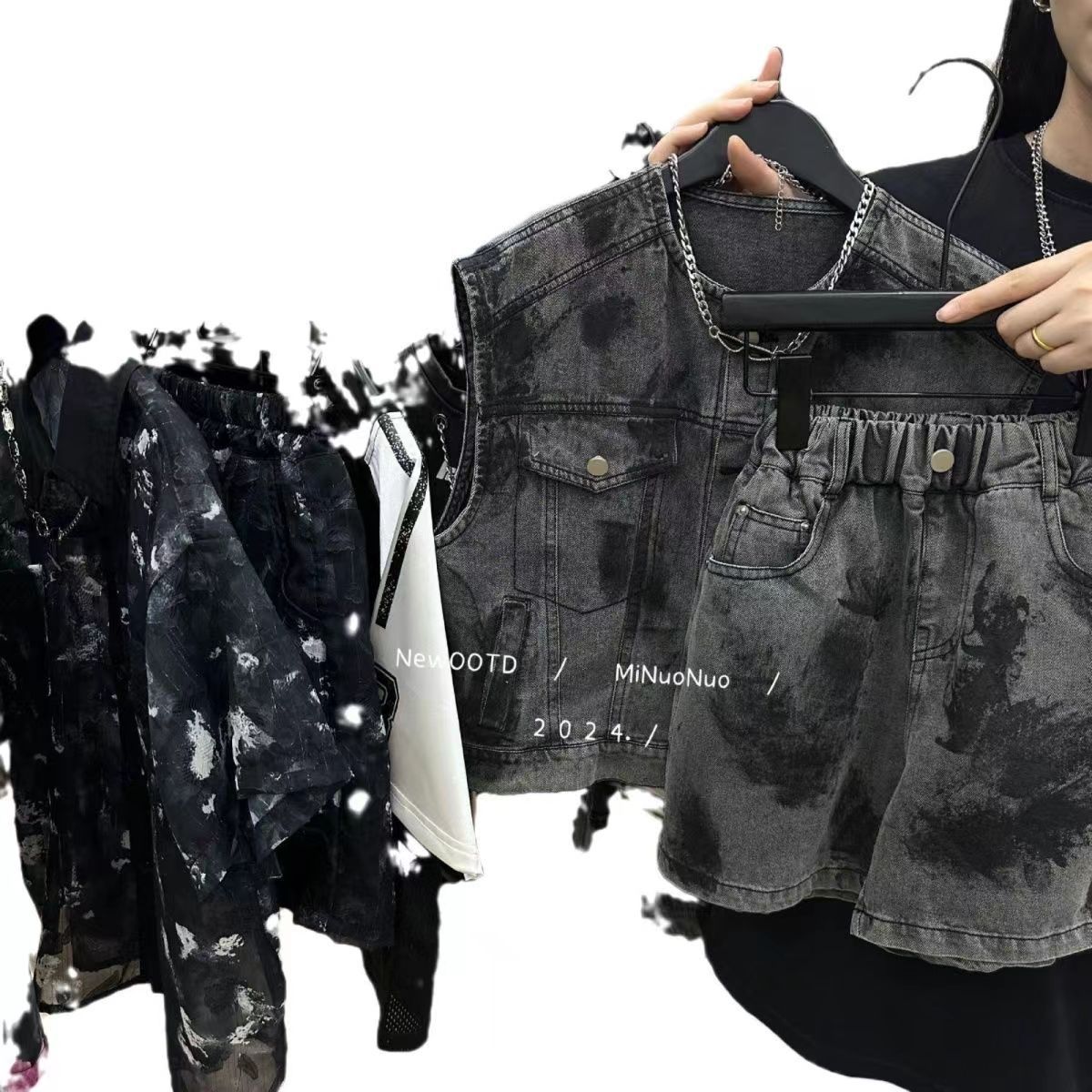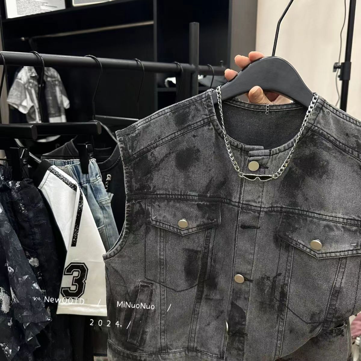 2025 년 여름 새 어린이 한국식 민소매 데님 중장 바지 소년 여름 유행 세트 투피스 세트