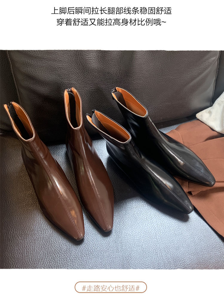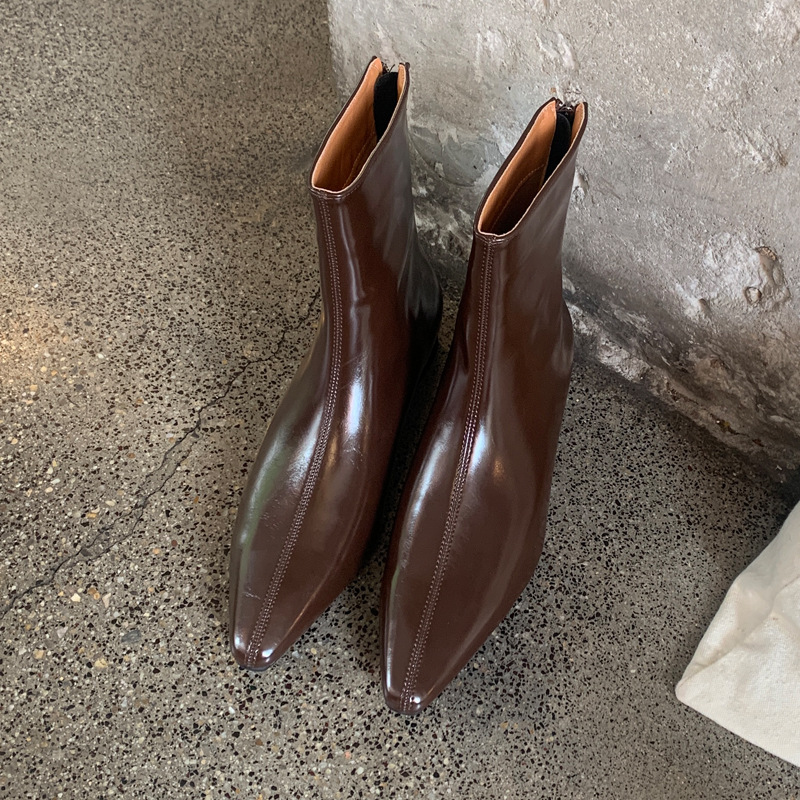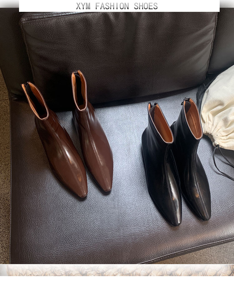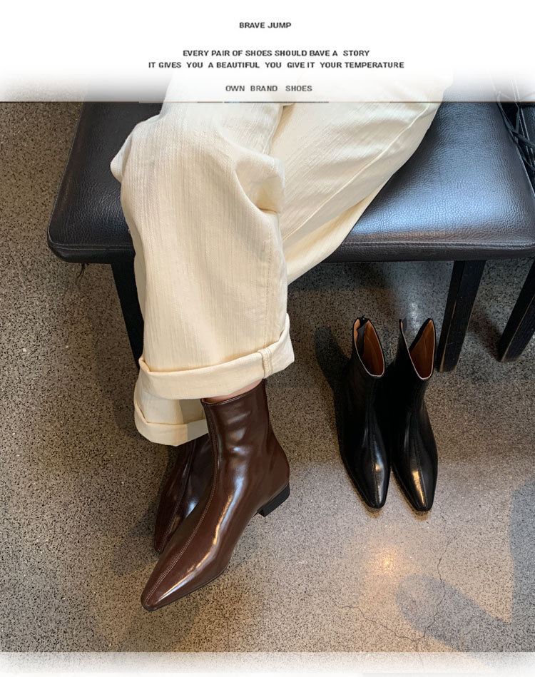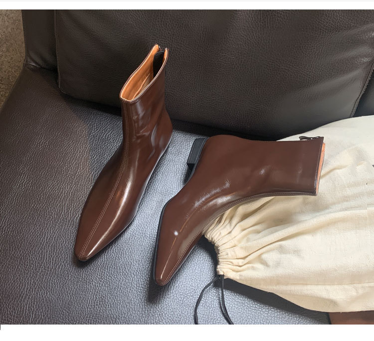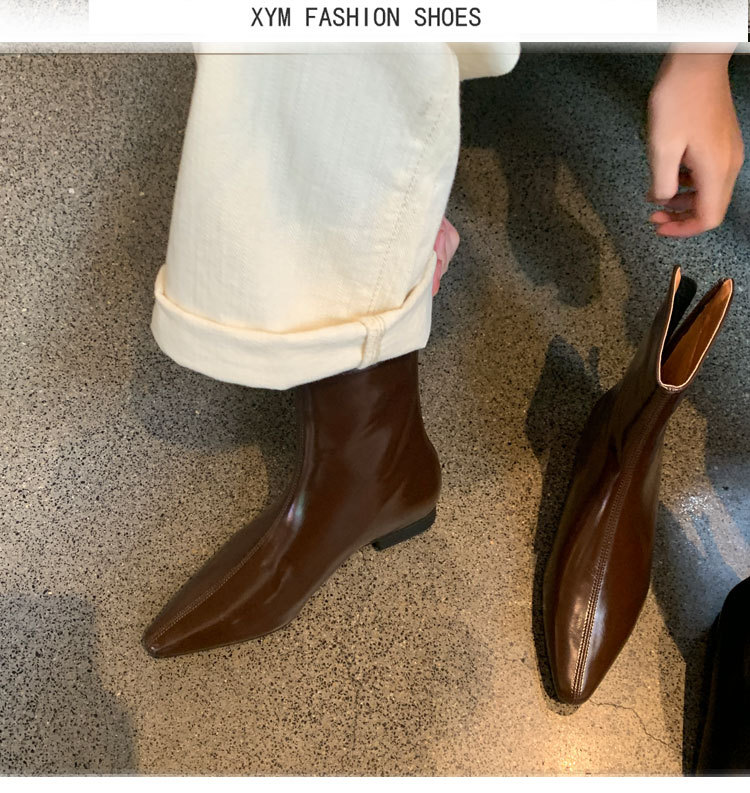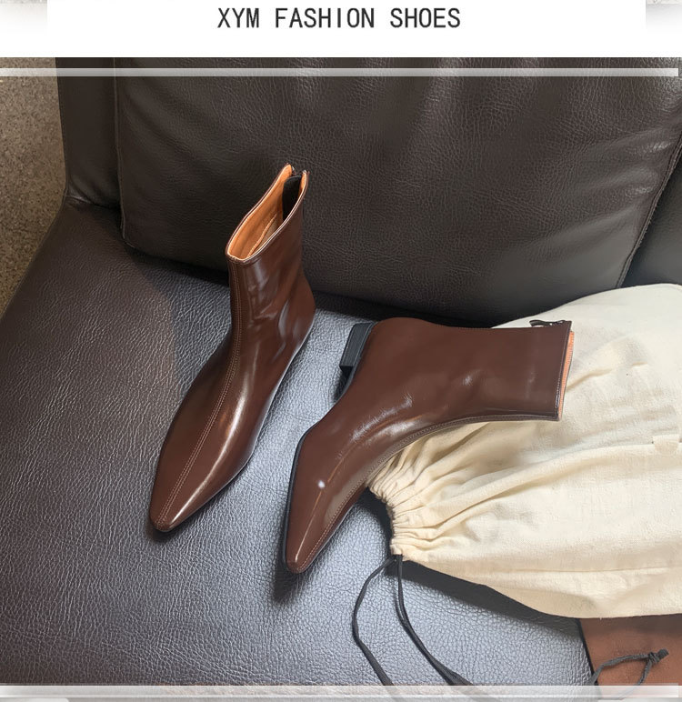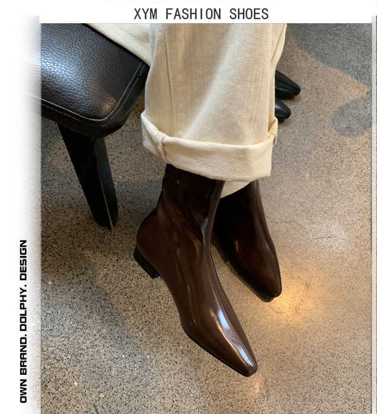 짧은 부츠 기사 부츠 유럽과 미국 스타일 다크 브라운 로우 힐 쇼트 부츠 여성 레트로 포인팅 첼시 쇼트 부츠 여자 두꺼운 힐
