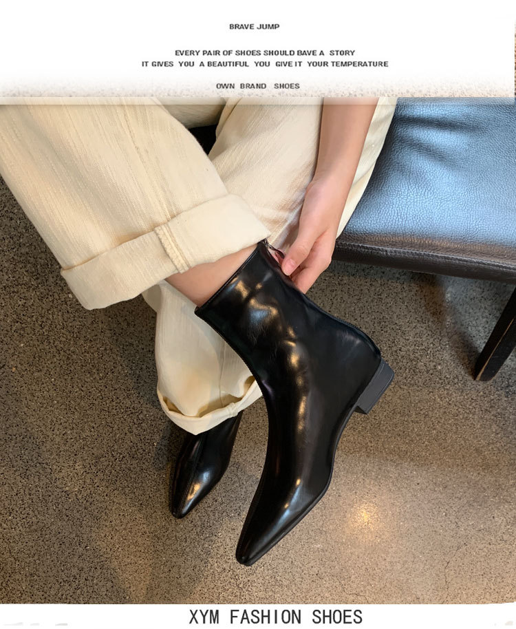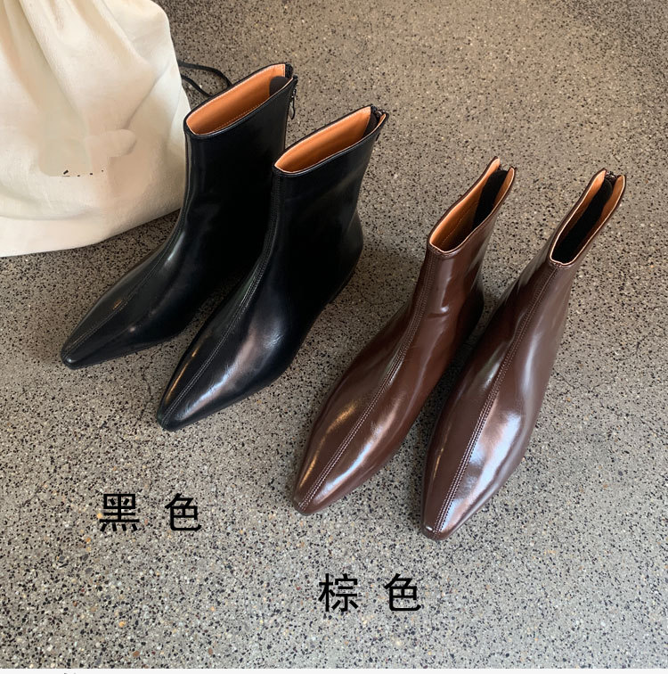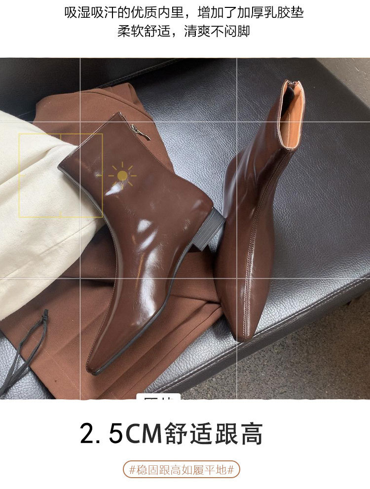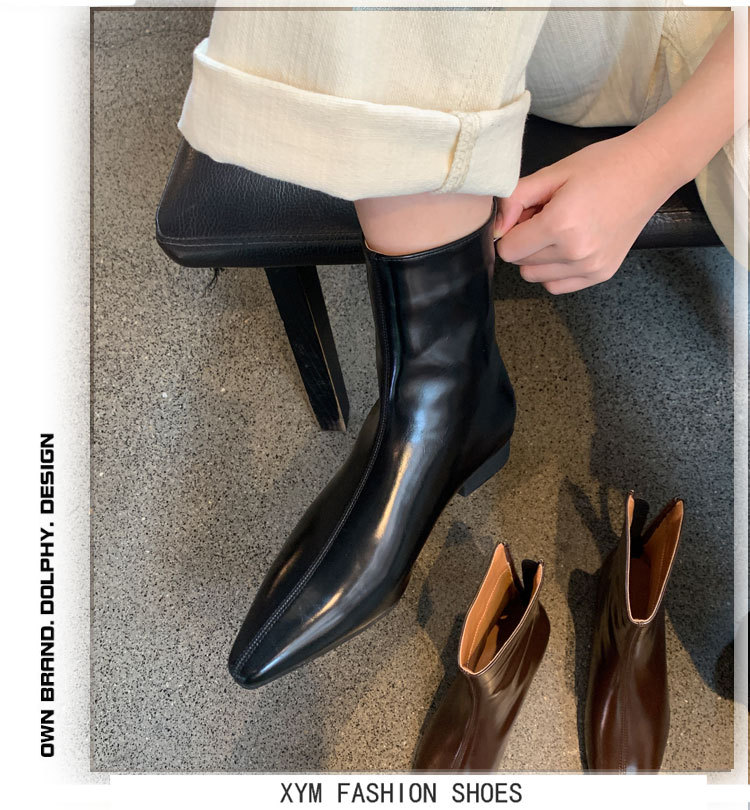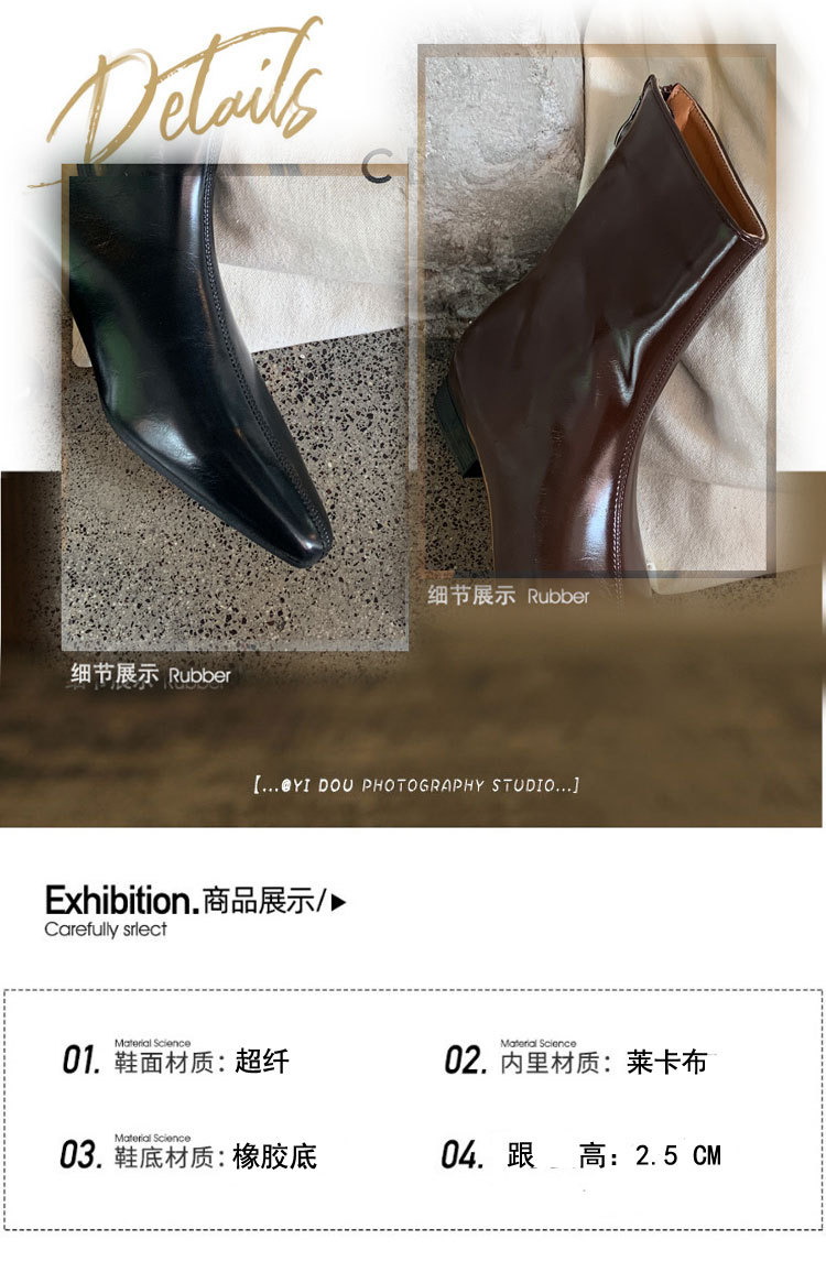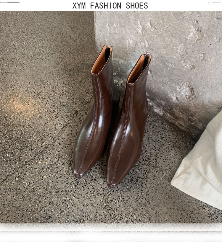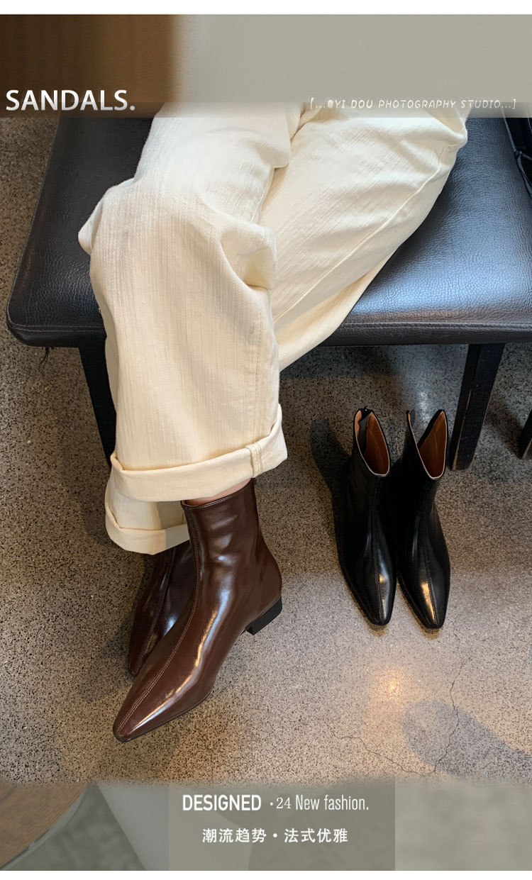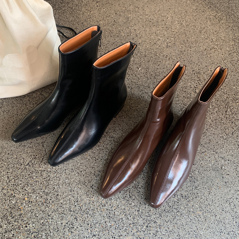 짧은 부츠 기사 부츠 유럽과 미국 스타일 다크 브라운 로우 힐 쇼트 부츠 여성 레트로 포인팅 첼시 쇼트 부츠 여자 두꺼운 힐
