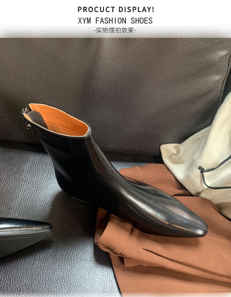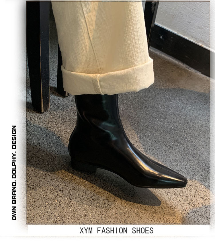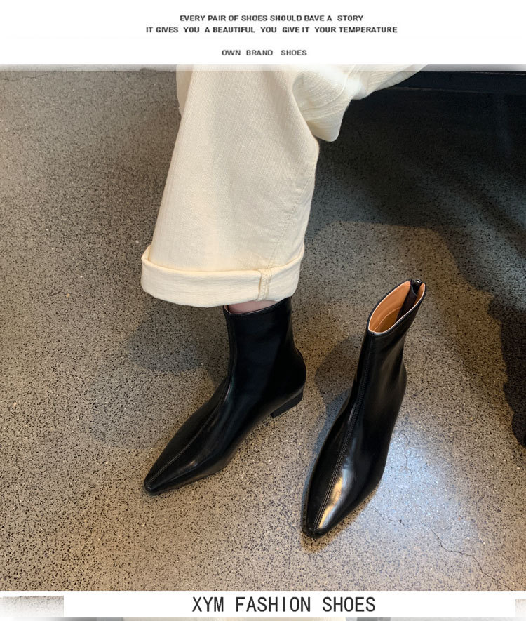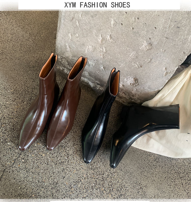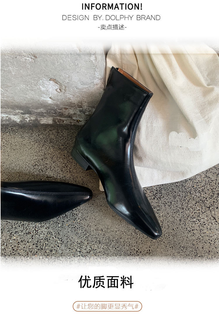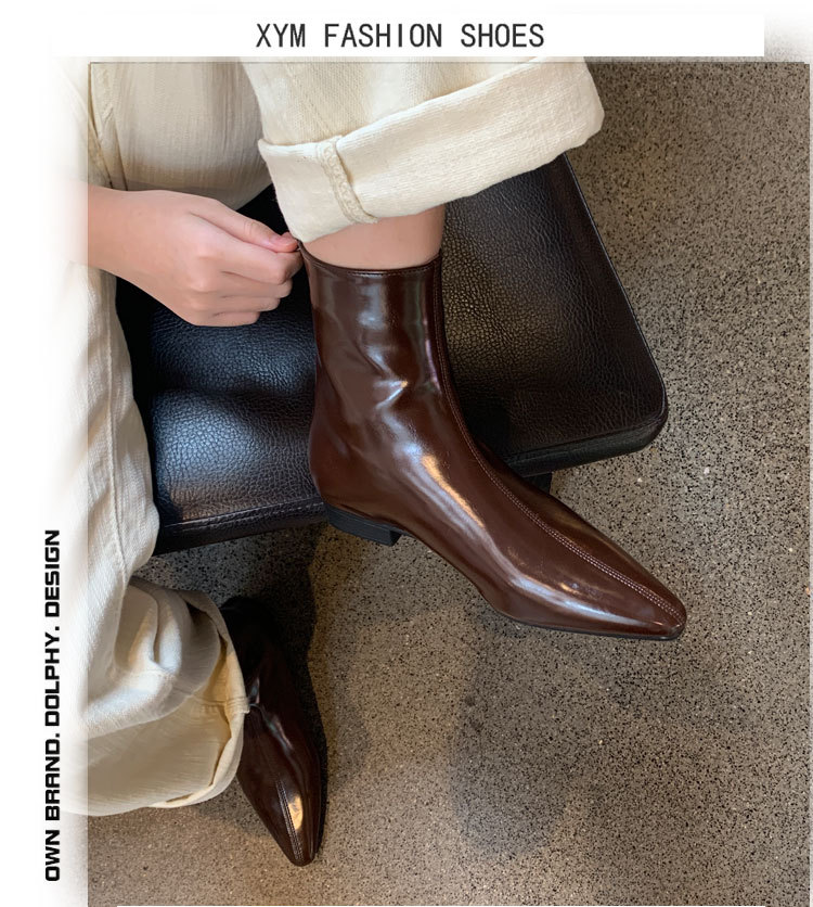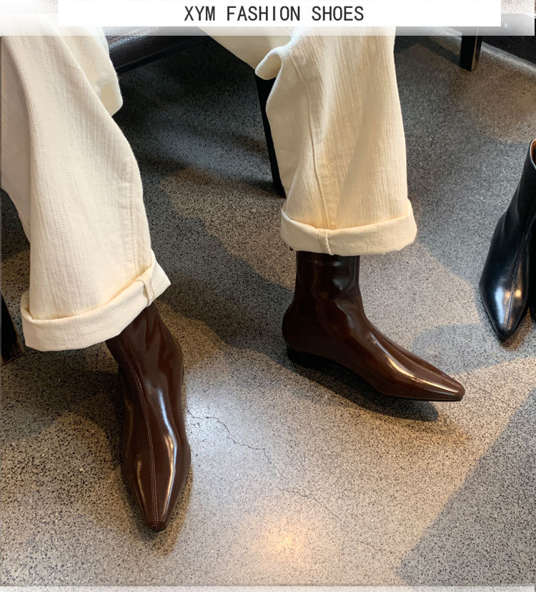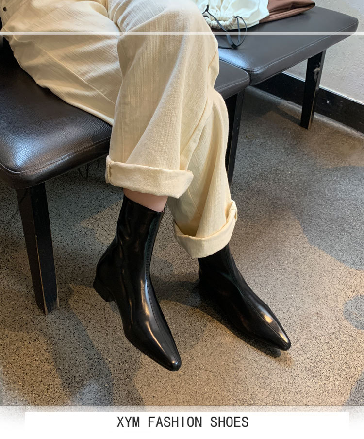 짧은 부츠 기사 부츠 유럽과 미국 스타일 다크 브라운 로우 힐 쇼트 부츠 여성 레트로 포인팅 첼시 쇼트 부츠 여자 두꺼운 힐