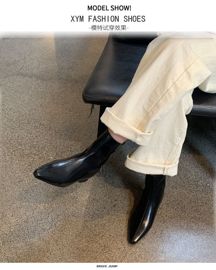 짧은 부츠 기사 부츠 유럽과 미국 스타일 다크 브라운 로우 힐 쇼트 부츠 여성 레트로 포인팅 첼시 쇼트 부츠 여자 두꺼운 힐스토어 가기