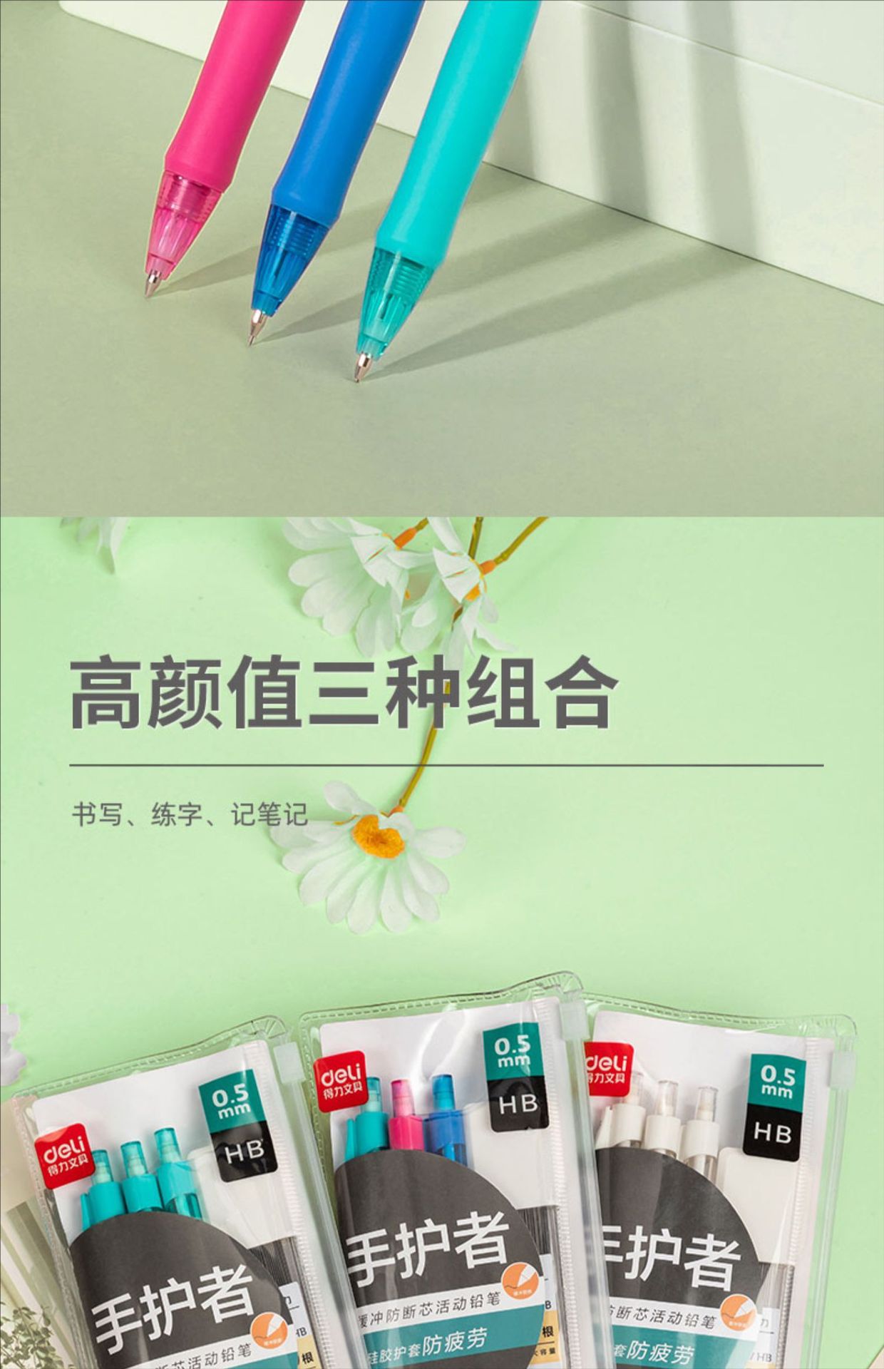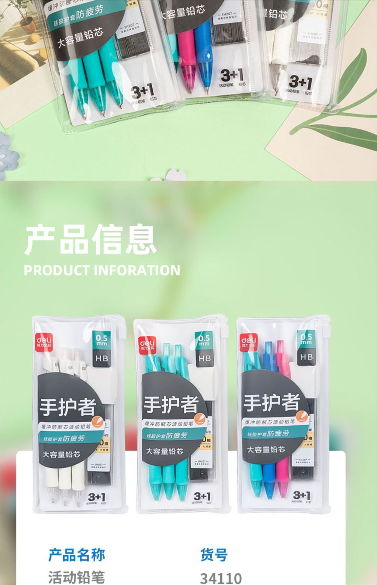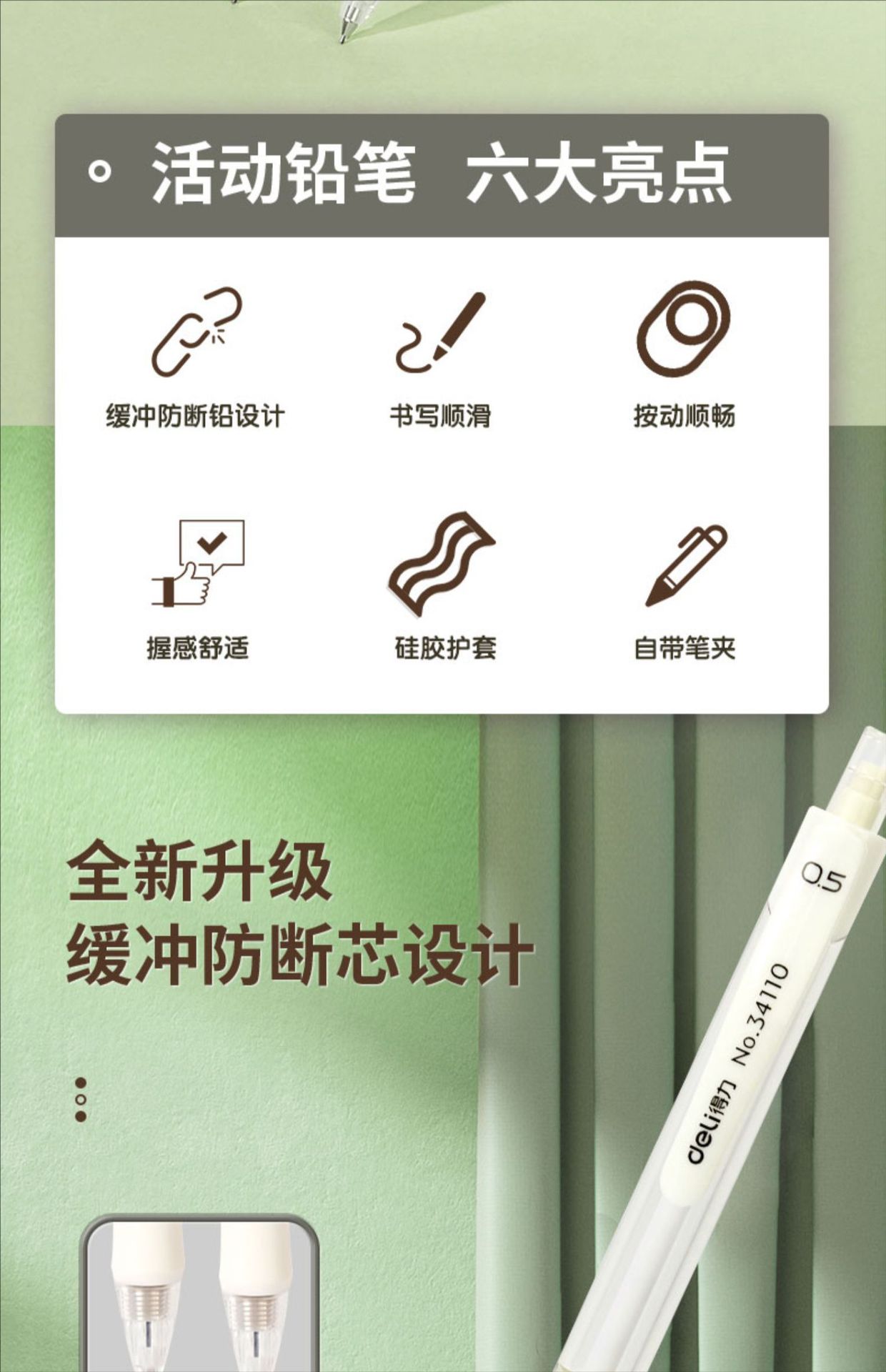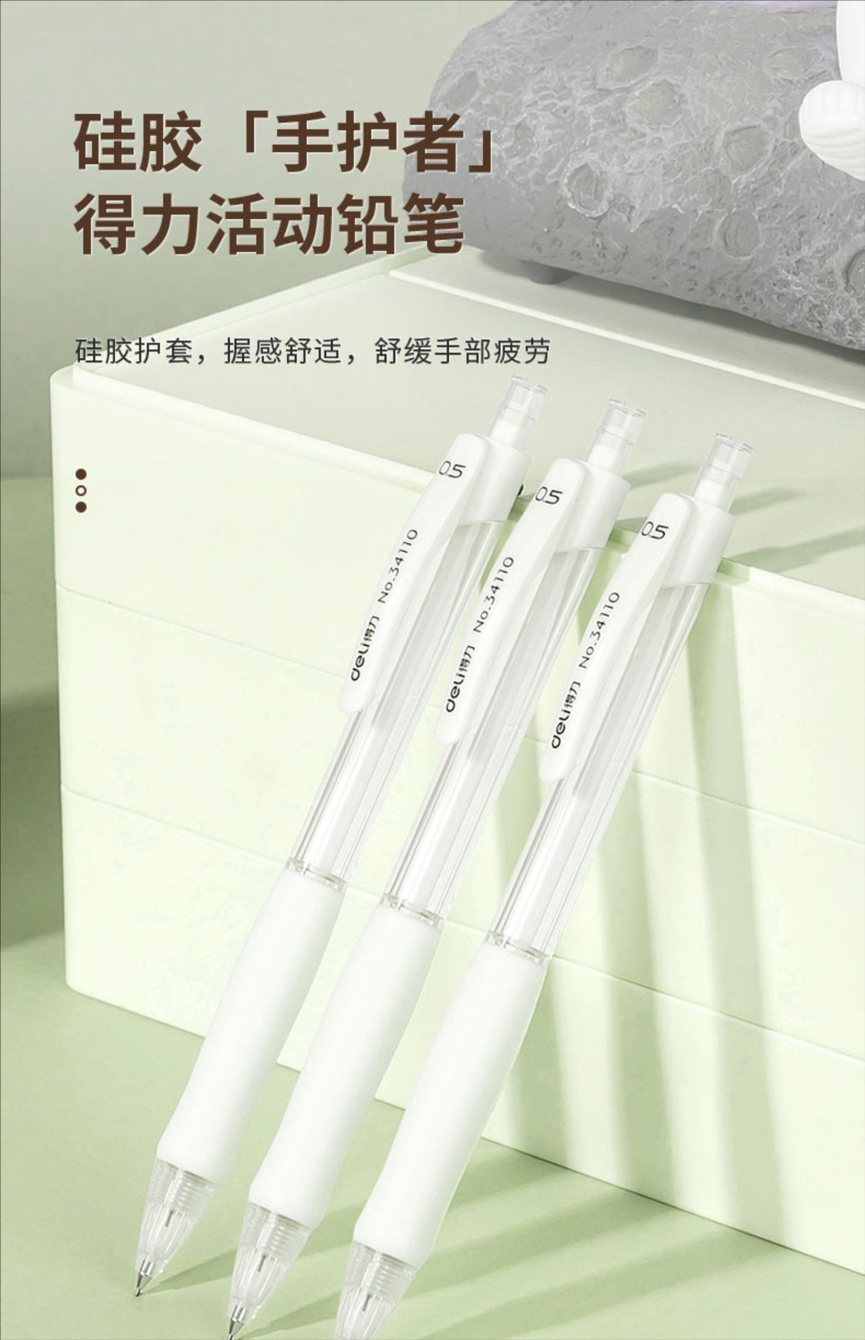 델리 34110 핸드 가드 쿠션 안티 브로큰 코어 플라스틱 액티브 연필 0.5mm 플라스틱 기계 연필 학생스토어 가기