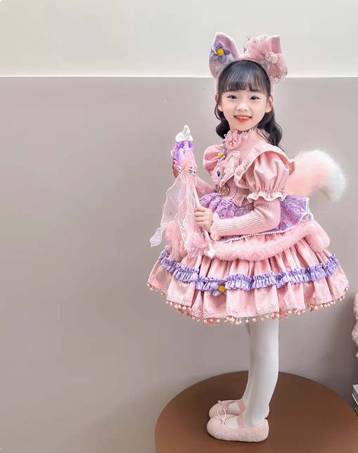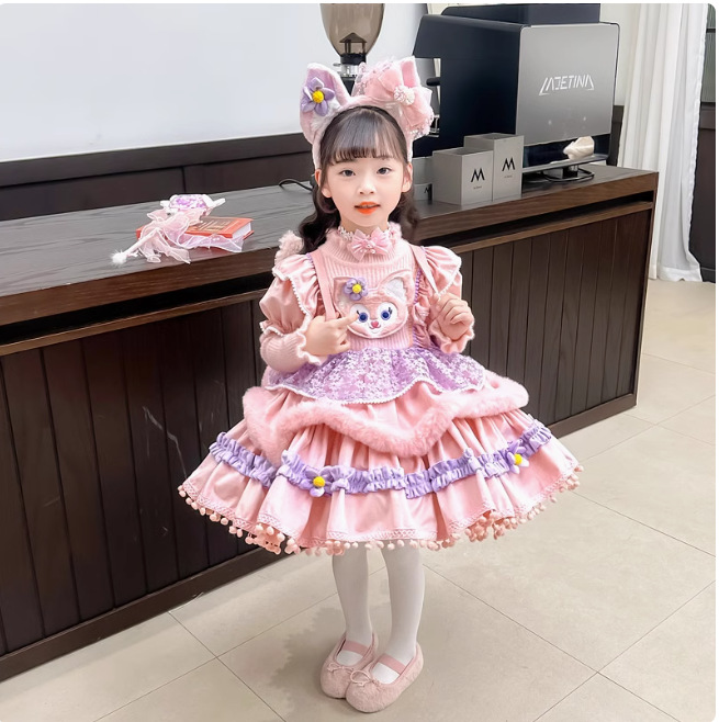 소녀 로리타 링나 벨 프린세스 원피스 2024 가을/겨울 새 어린이 스웨터 원피스 생일 폰카타