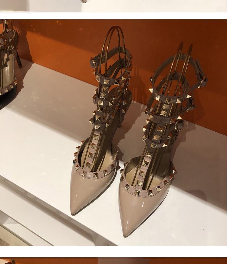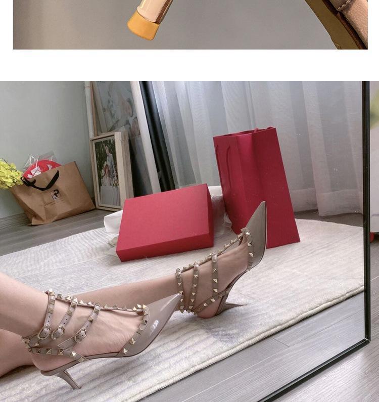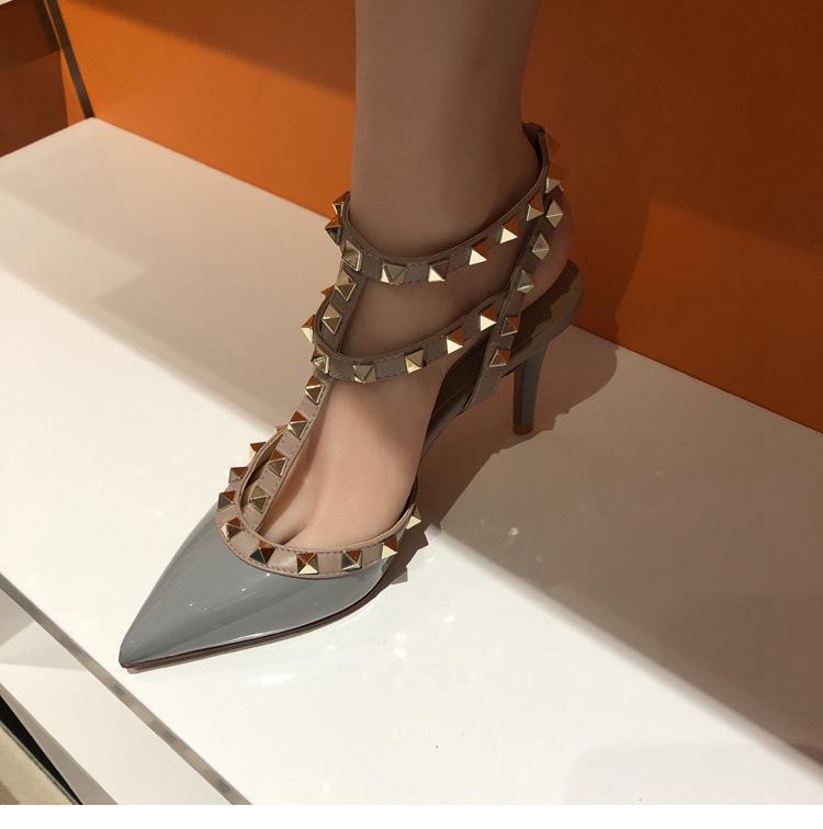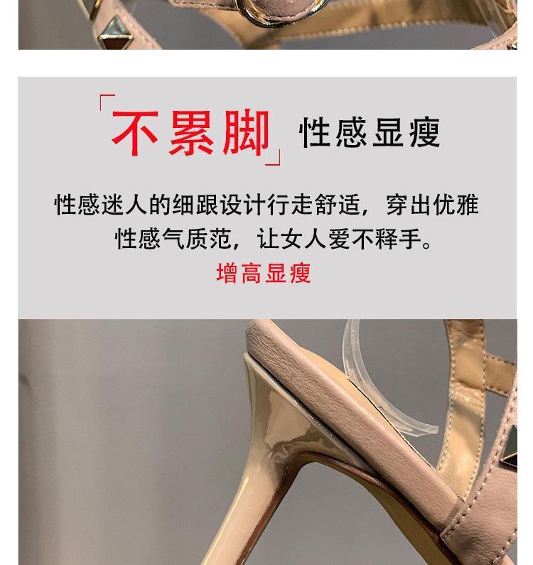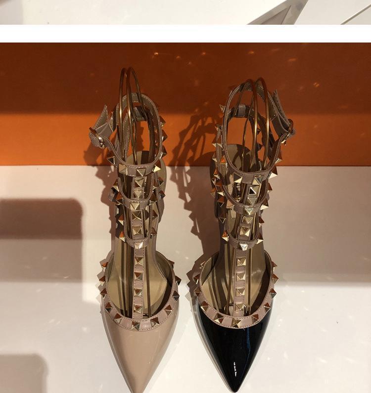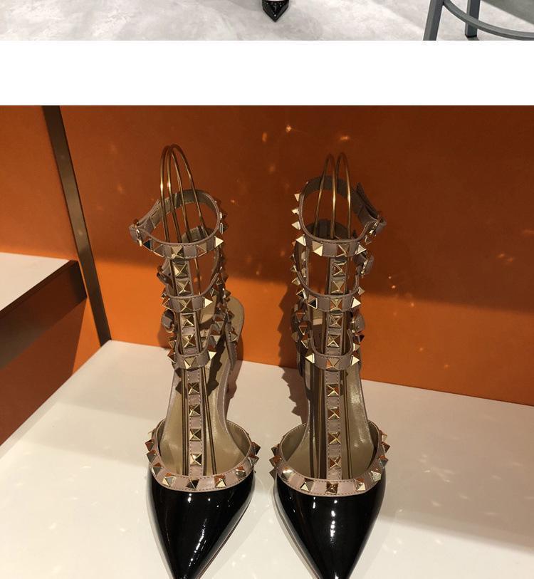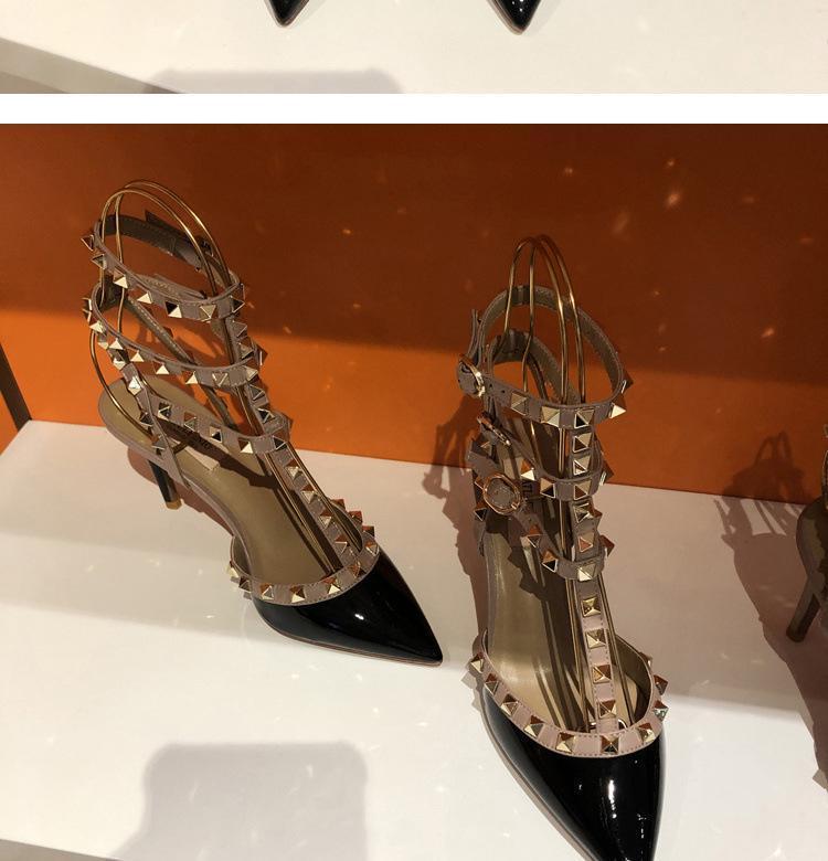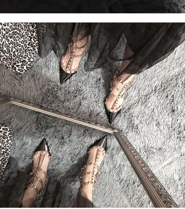 3 링 리벳 하이힐 2024 봄 새로운 사이버 축하 뾰족한 스틸레토 힐 샌들 여성용 버클 싱글 레이어 신발스토어 가기