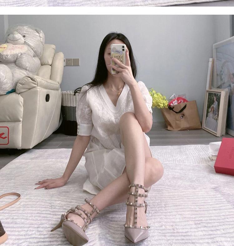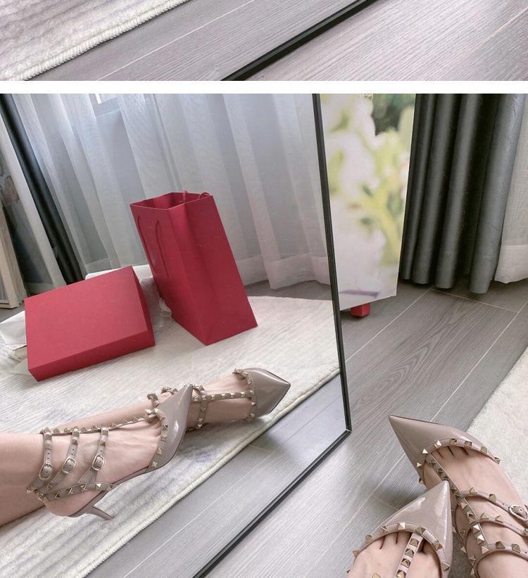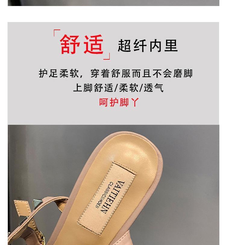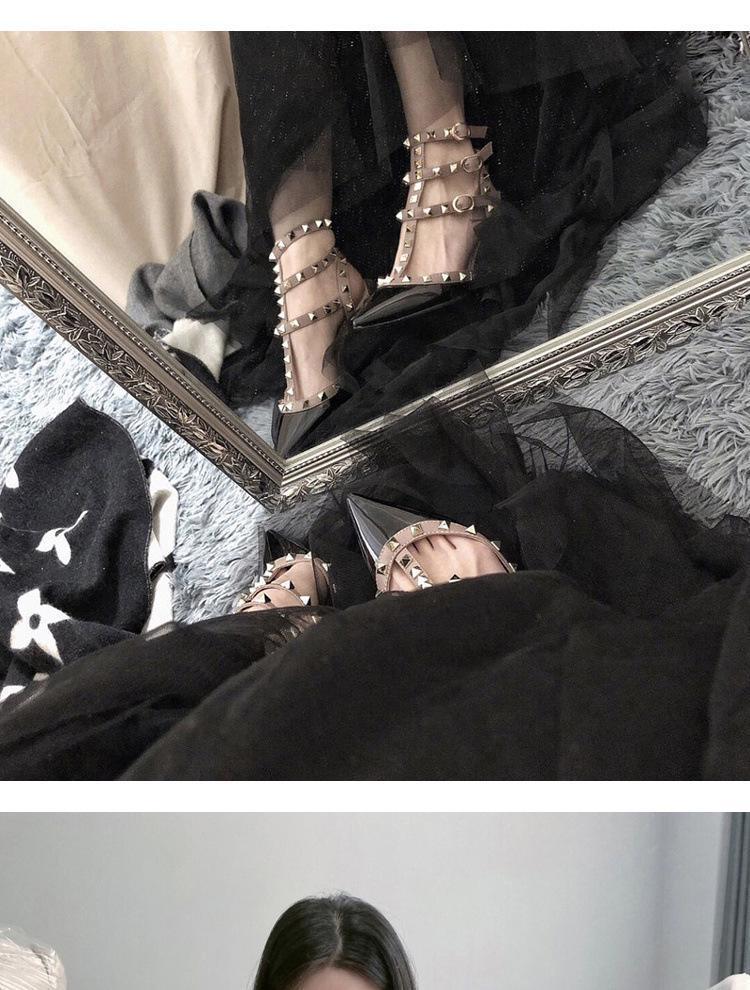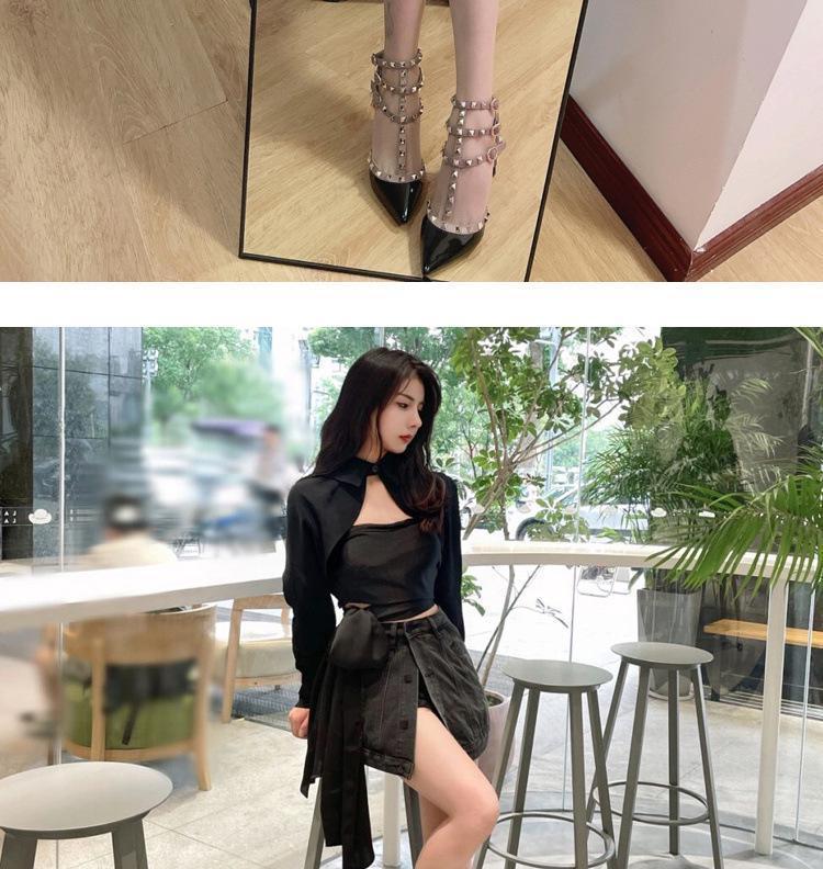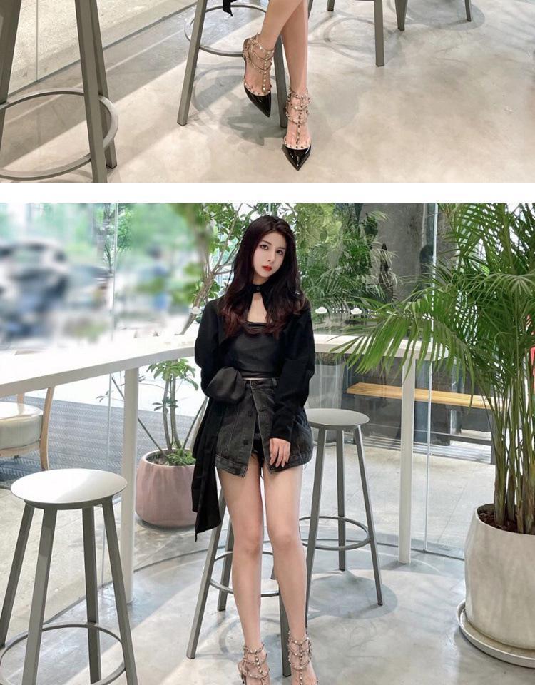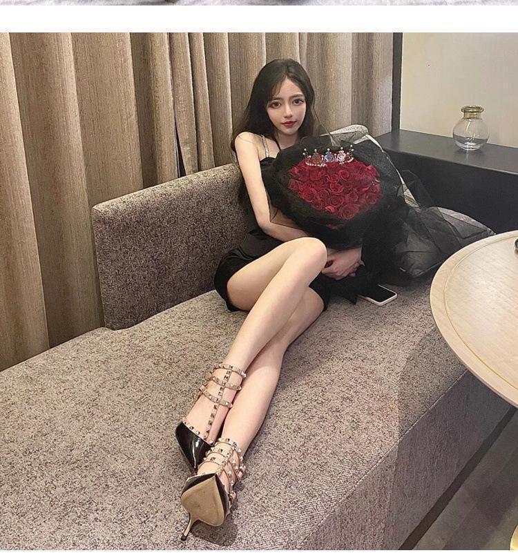 3 링 리벳 하이힐 2024 봄 새로운 사이버 축하 뾰족한 스틸레토 힐 샌들 여성용 버클 싱글 레이어 신발스토어 가기