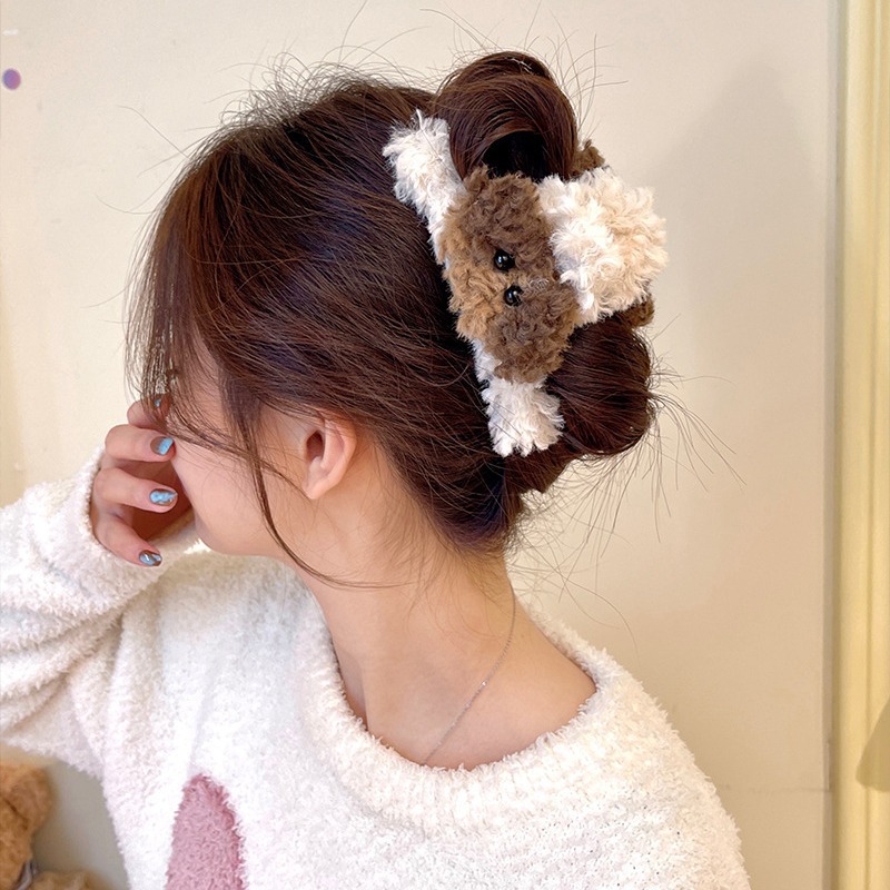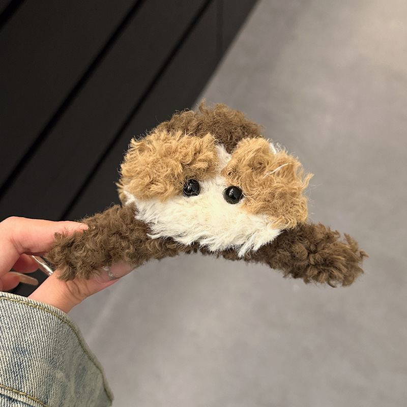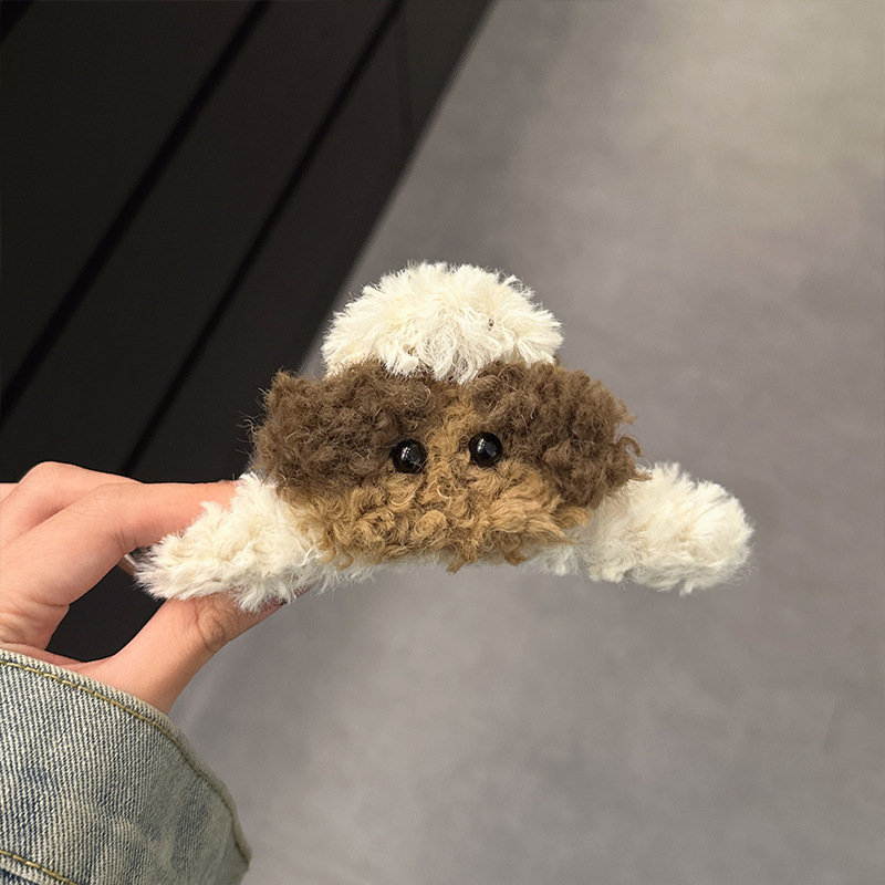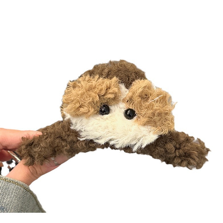 곱슬 사랑스러운 개 ~ 가을과 겨울 봉제 대형 그립 클립 여성의 2023 새로운 머리 귀여운 머리 상어 클립 헤어 액세서리스토어 가기
