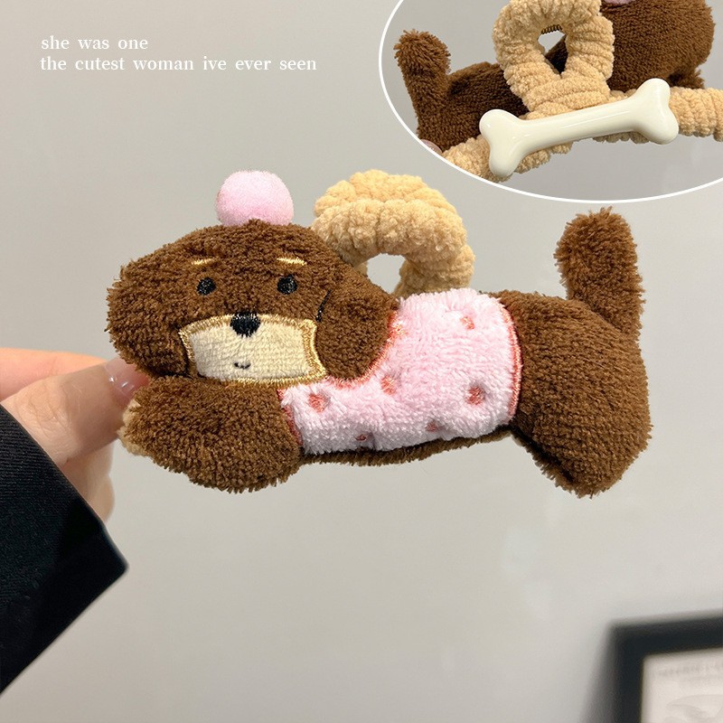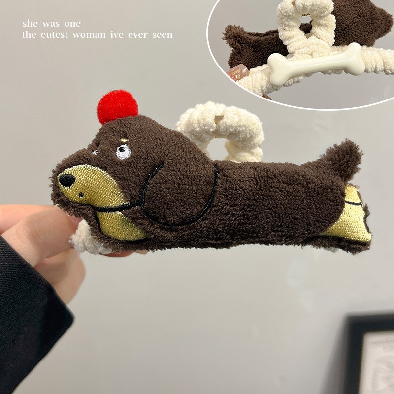 곱슬 사랑스러운 개 ~ 가을과 겨울 봉제 대형 그립 클립 여성의 2023 새로운 머리 귀여운 머리 상어 클립 헤어 액세서리
