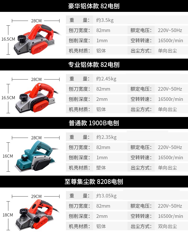 • 알루미늄 본체 전기 대패의 극한 버전 + 선물 팩 2(양방향 먼지 배출)
