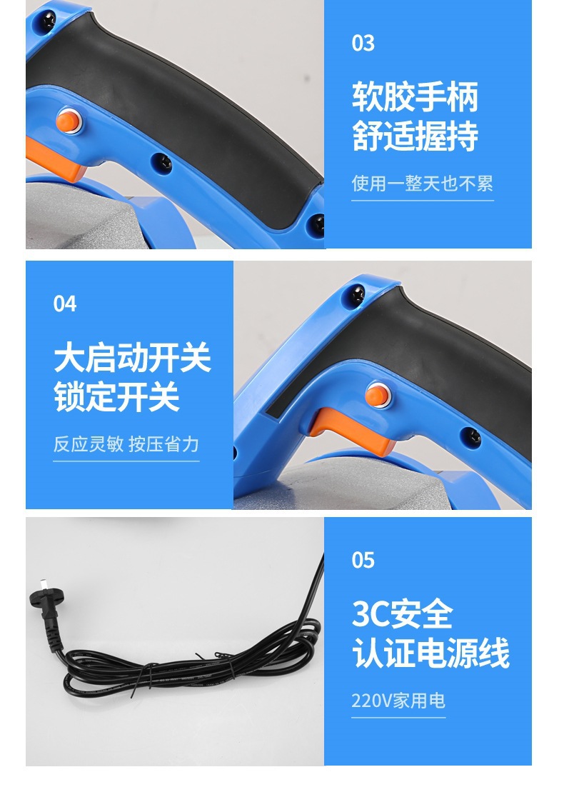 • 2500W 알루미늄 쉘 역파일 이중 목적(공구 상자에 포장)에는 전체 액세서리 세트가 함께 제공됩니다.