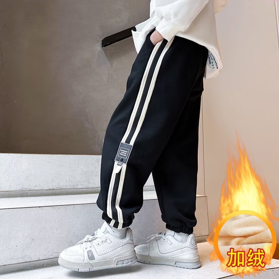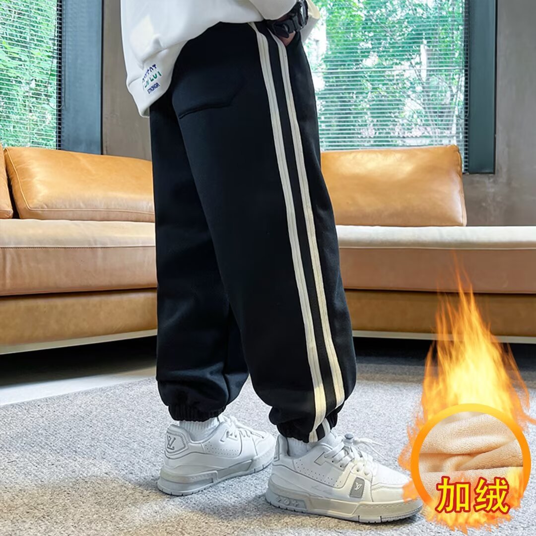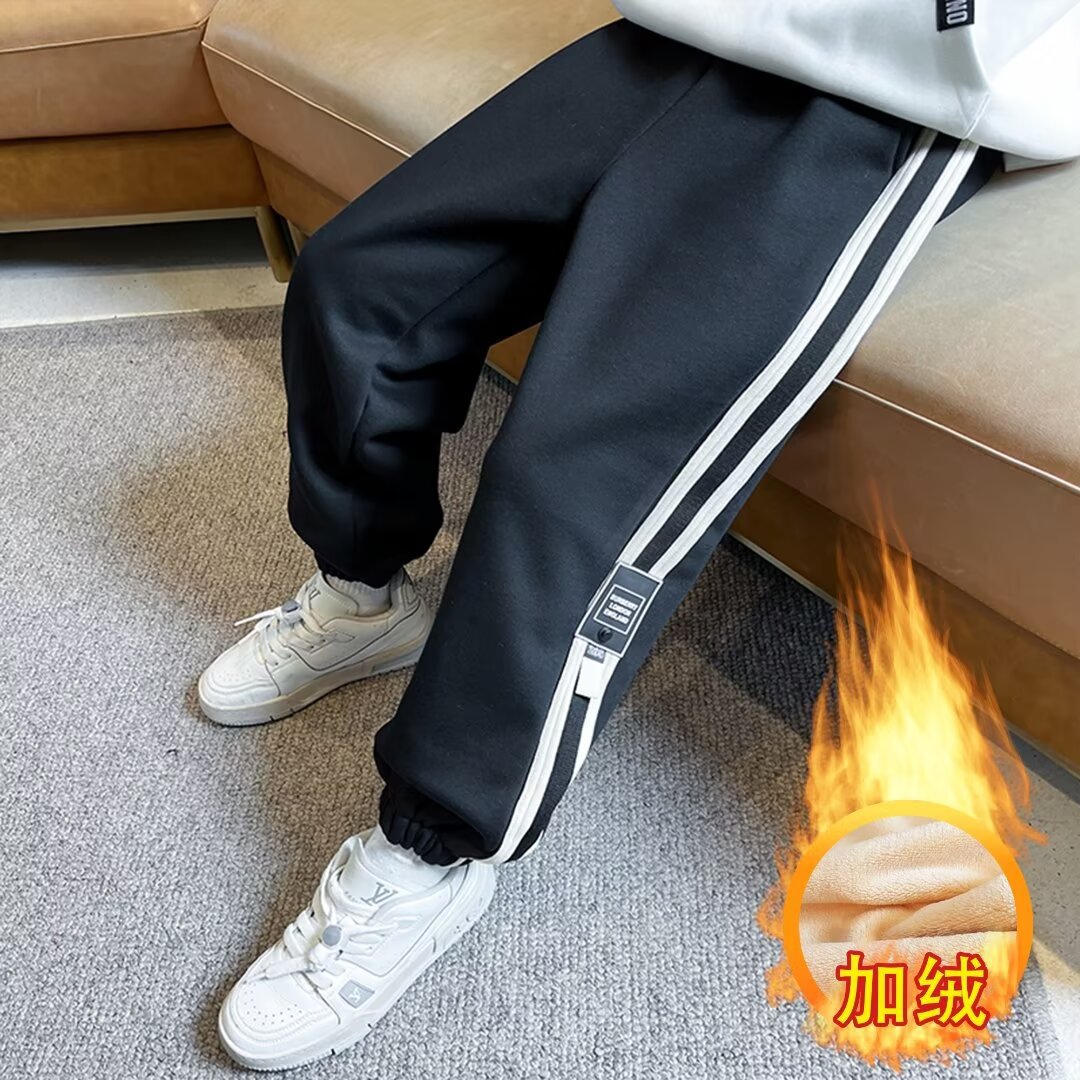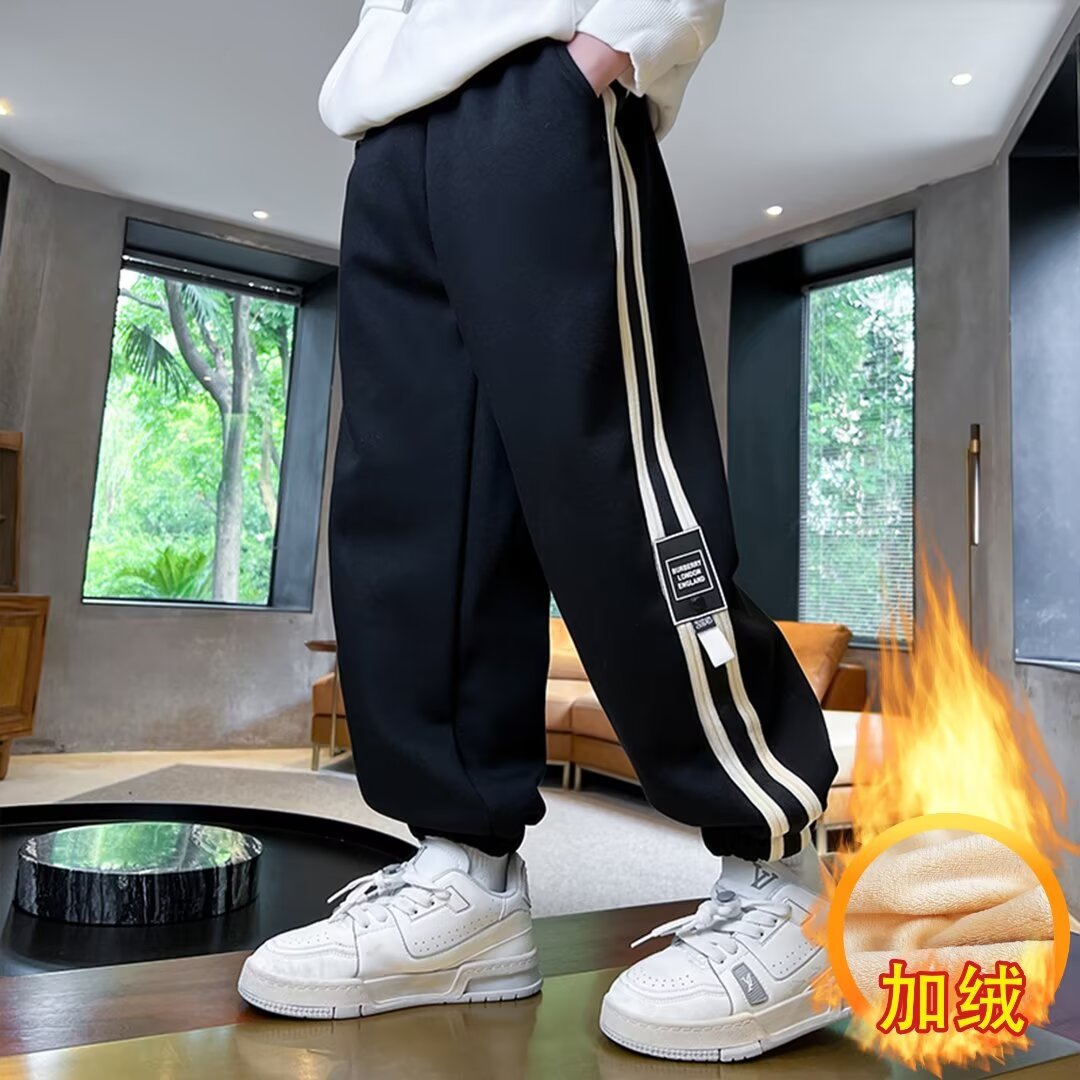 소년 스위트 팬츠 2024 가을/겨울 뉴 보이즈 스포츠 바지 느슨한 편안한 미중 및 큰 어린이 대조 기모 캐주얼 바지스토어 가기