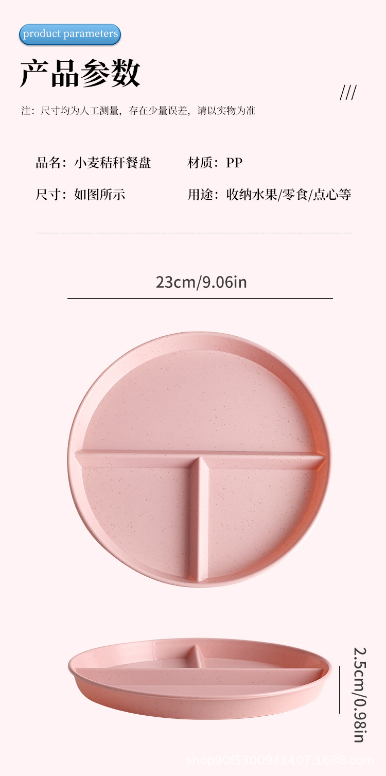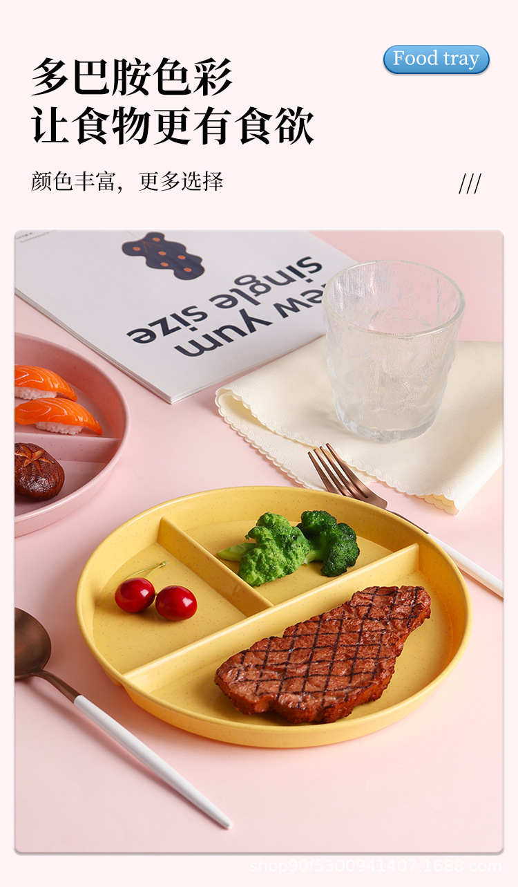 밀 밀짚 스플릿 플레이트 플라스틱 플레이트 라운드 스플릿 플레이트 지방 감소 플레이트 높은 가치 과일 플레이트 서양 식품 Salade 플레이트스토어 가기