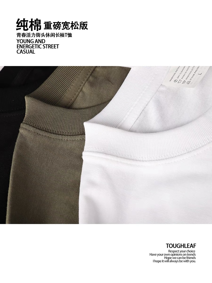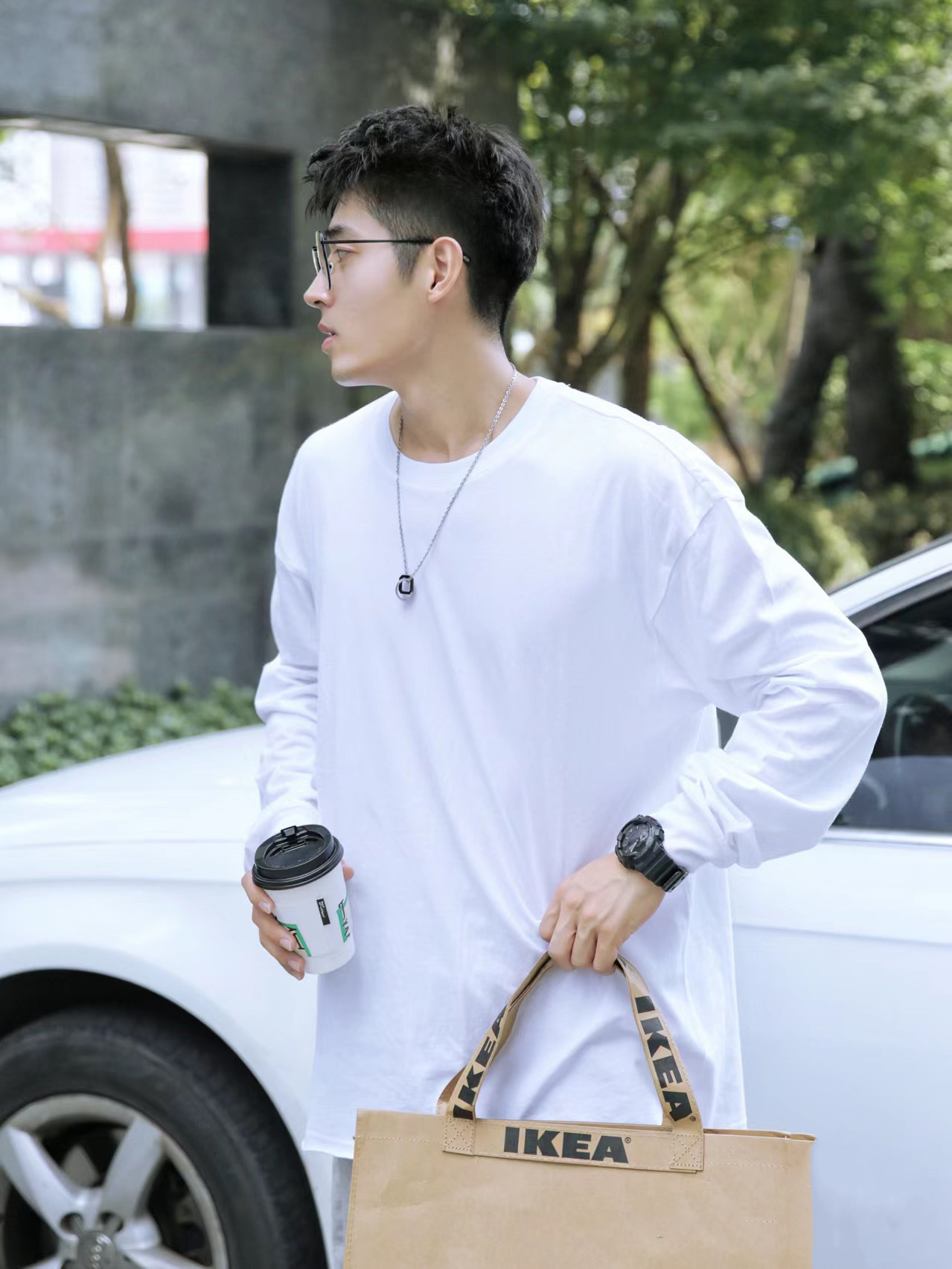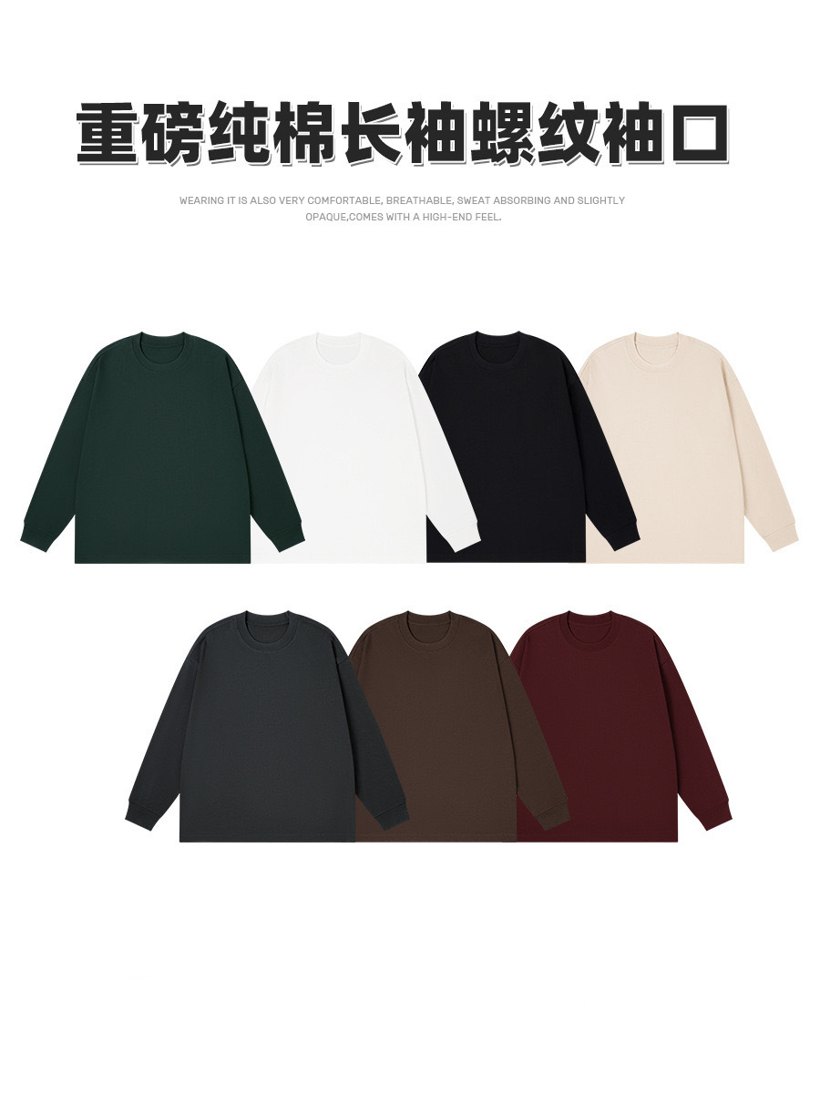 가을/겨울 새로운 무거운면 360g 단색 실 긴 소매 티셔츠 남성용 둥근 목 느슨한 바닥 셔츠 남성복스토어 가기