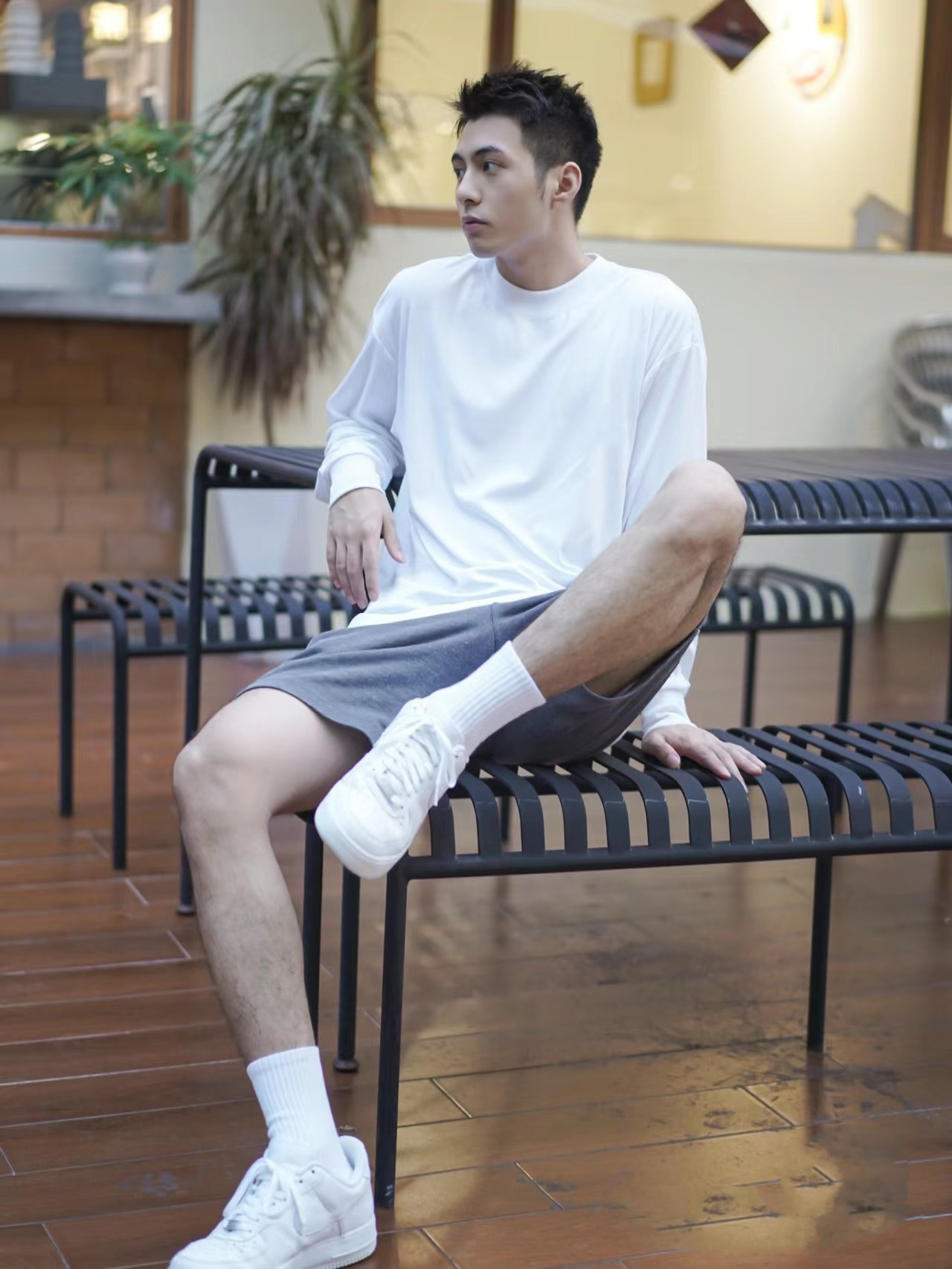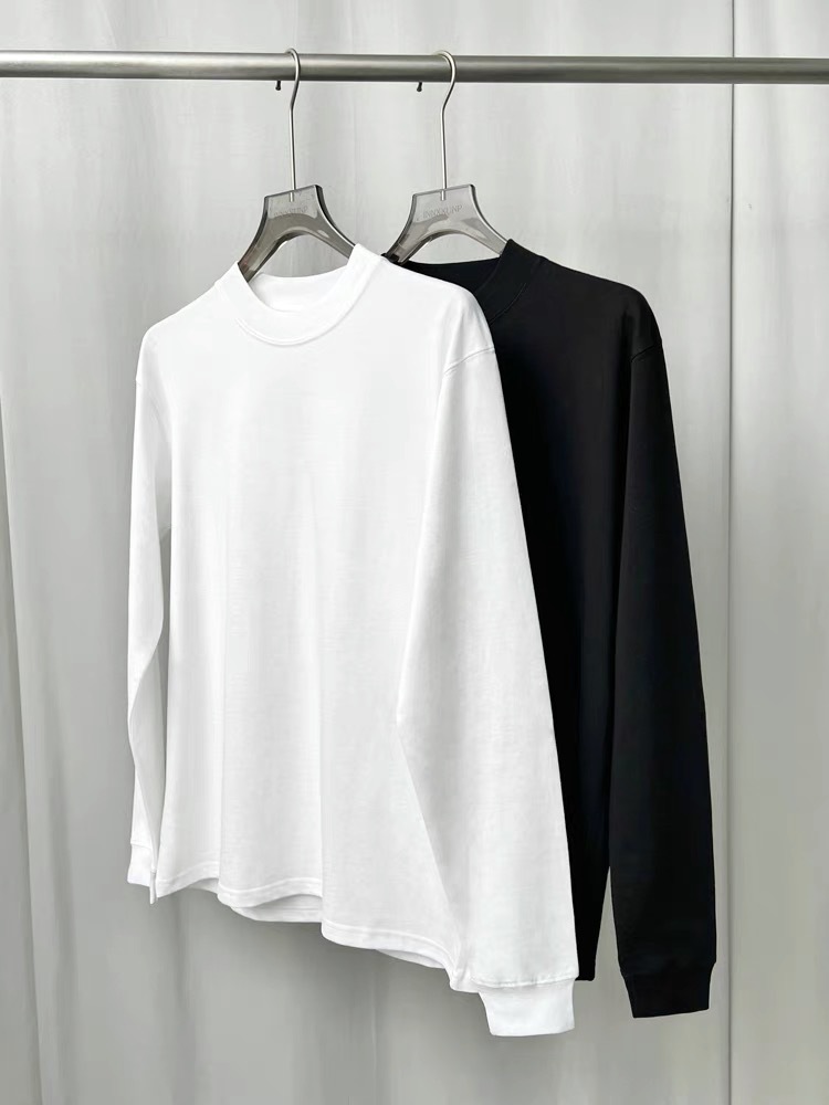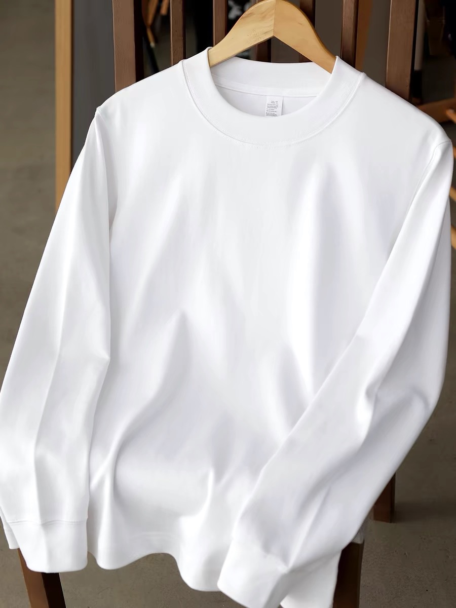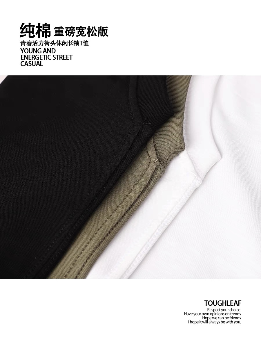 가을/겨울 새로운 무거운면 360g 단색 실 긴 소매 티셔츠 남성용 둥근 목 느슨한 바닥 셔츠 남성복스토어 가기