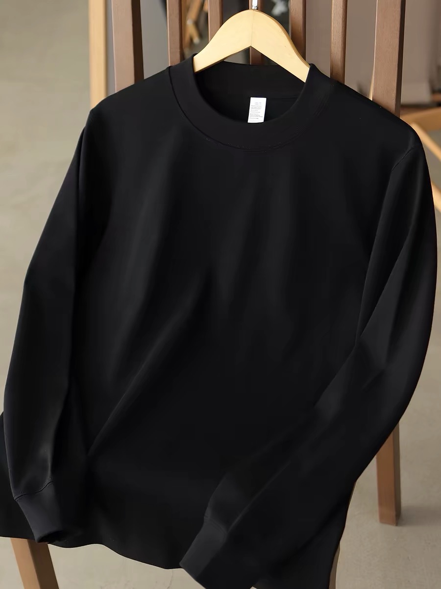 가을/겨울 새로운 무거운면 360g 단색 실 긴 소매 티셔츠 남성용 둥근 목 느슨한 바닥 셔츠 남성복