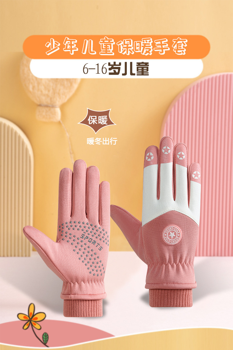 초등학생, 중학생, 청소년 및 어린이 스키 벨벳 장갑 가을 겨울 따뜻한 야외 사이클링 방수 및 방풍