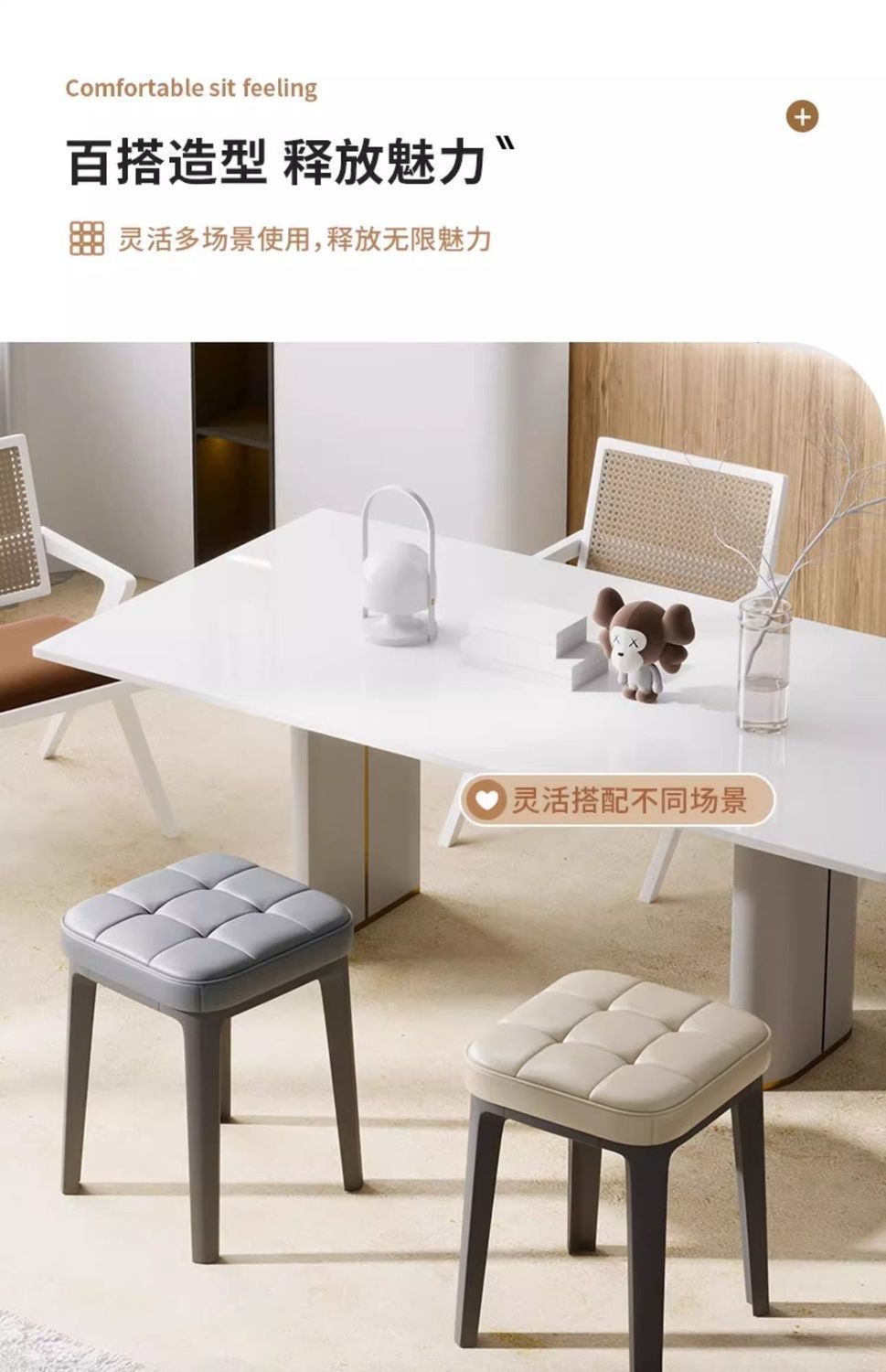 • 미색 + 부드러운 스툴 4개