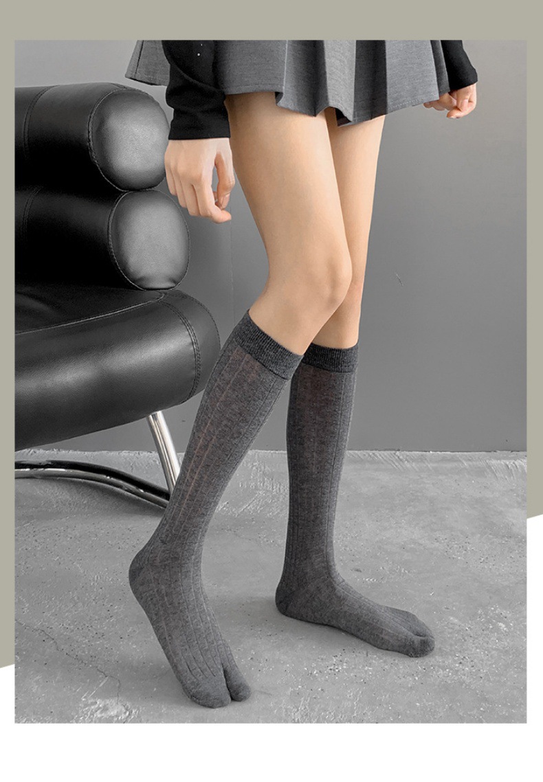 여성용 발 양말 수직 줄무늬 봄 및 가을 얇은 스타킹 두 톤 엄지 발가락 양말 소녀 돼지 신발 양고기 발 양말