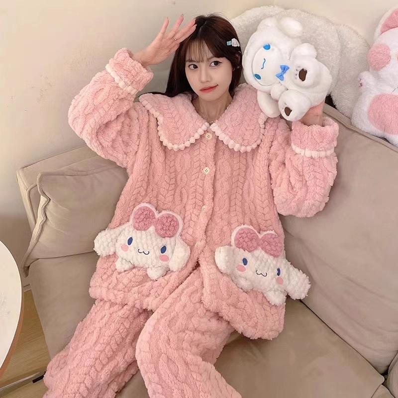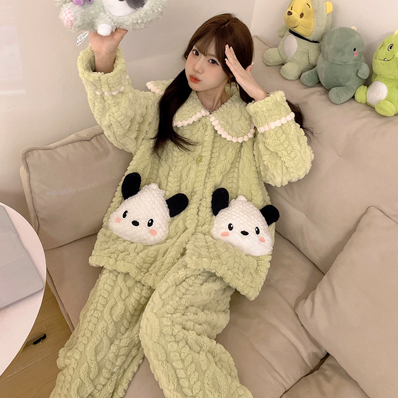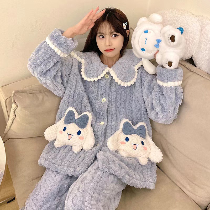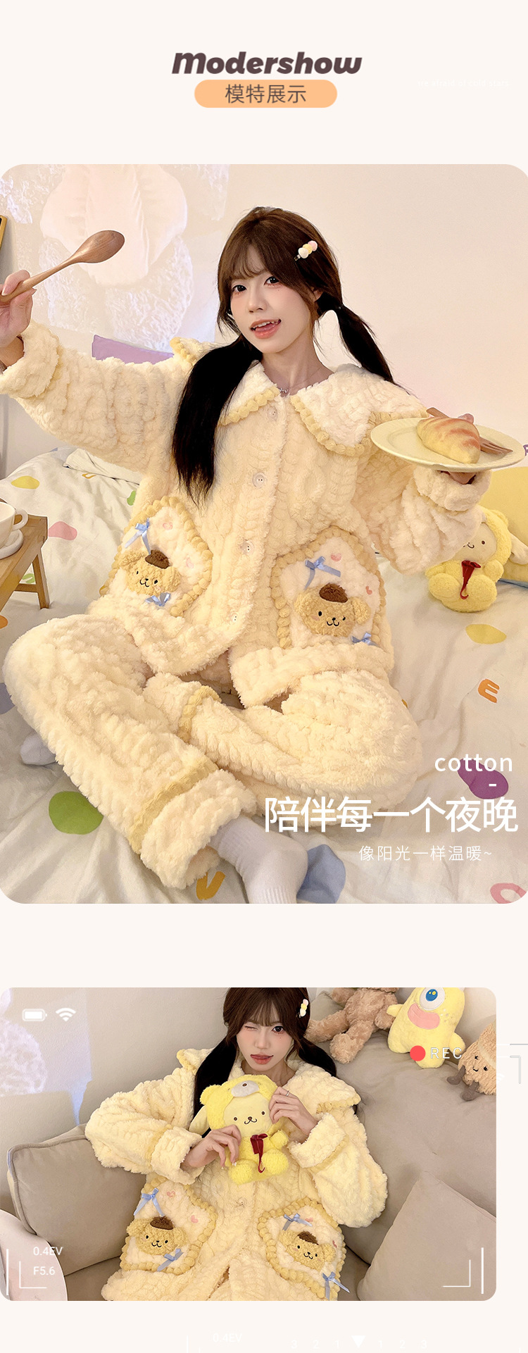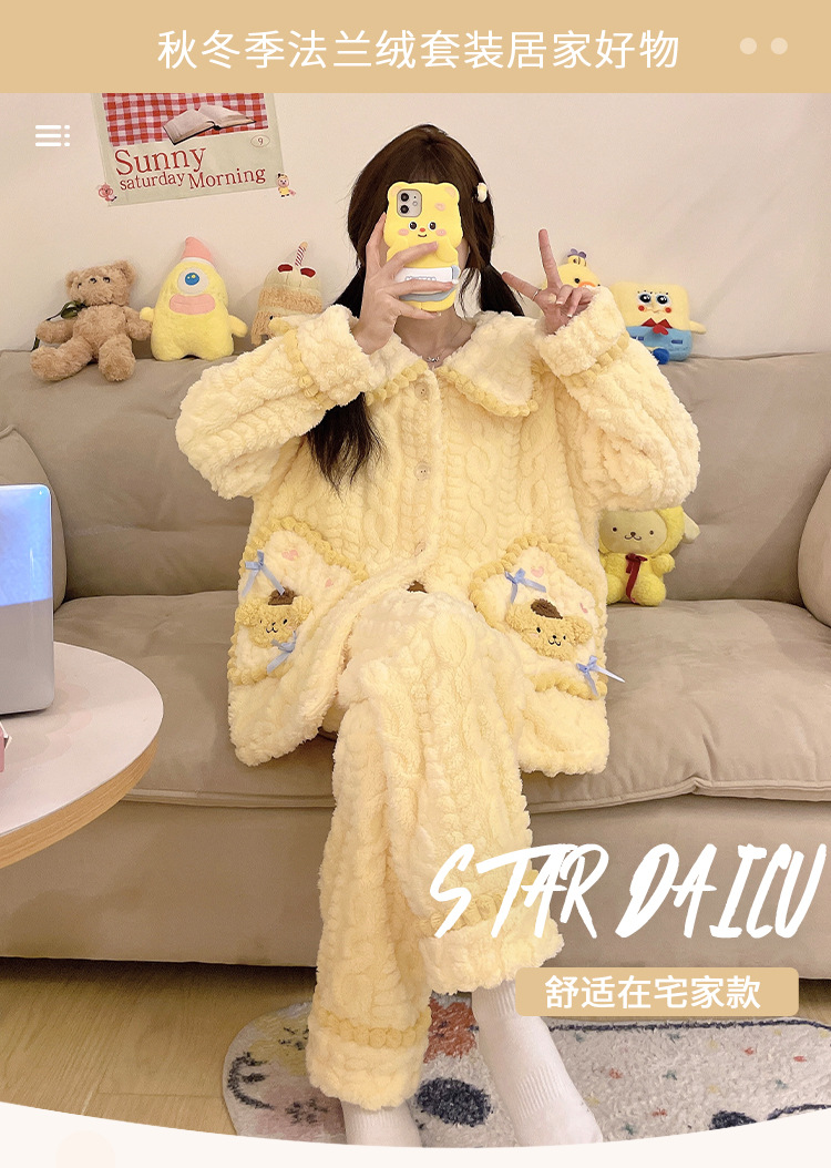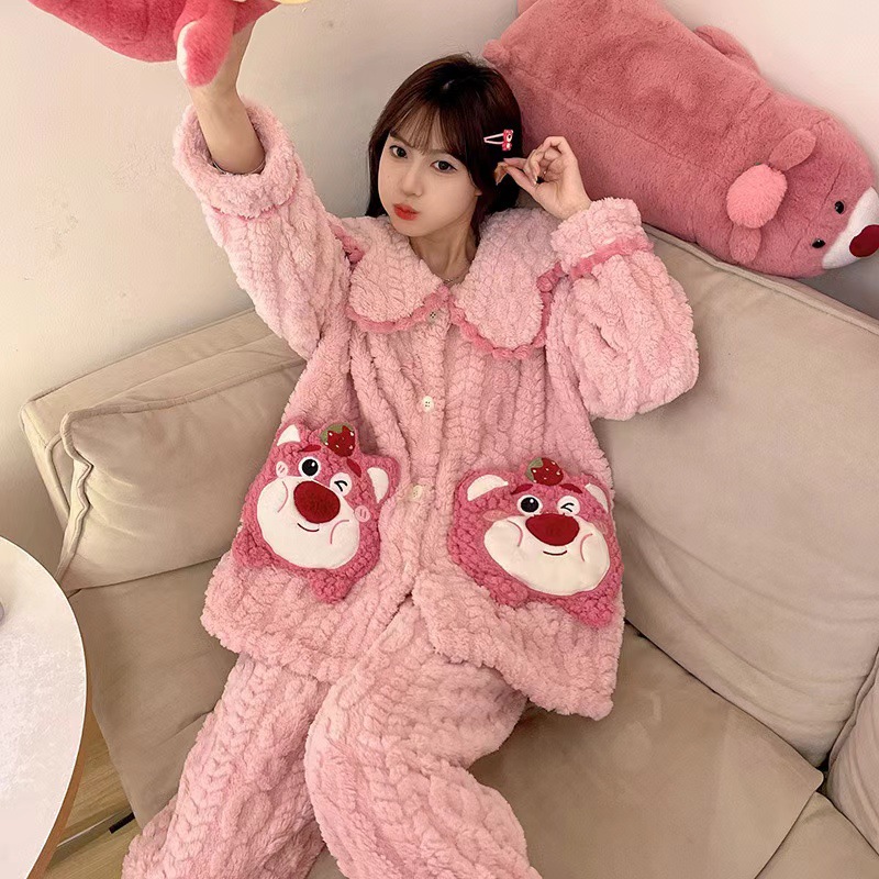 2024 새로운 잠옷 여성 산호 양털 가을과 겨울 기모 두꺼운 만화 달콤한 겨울 플란넬 홈 의류스토어 가기
