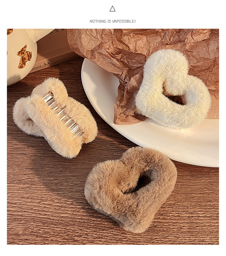 국경 간 가을과 겨울 새로운 마일라드 플러시 러브 그랩 클립 달콤한 간단한 반 넥타이 머리 중간 상어 클립 헤드웨어