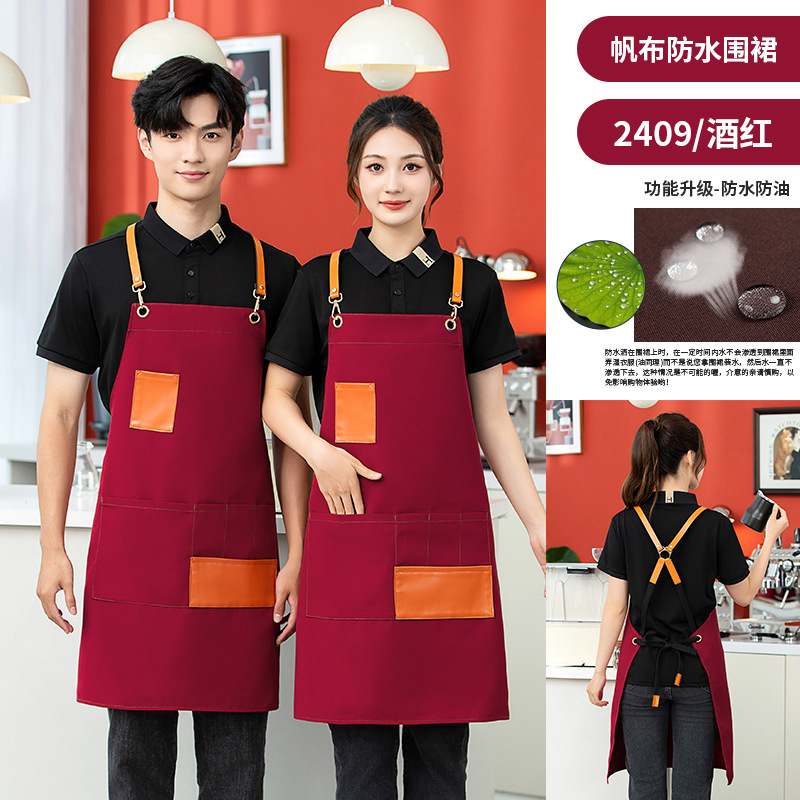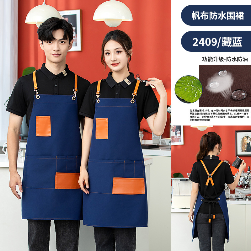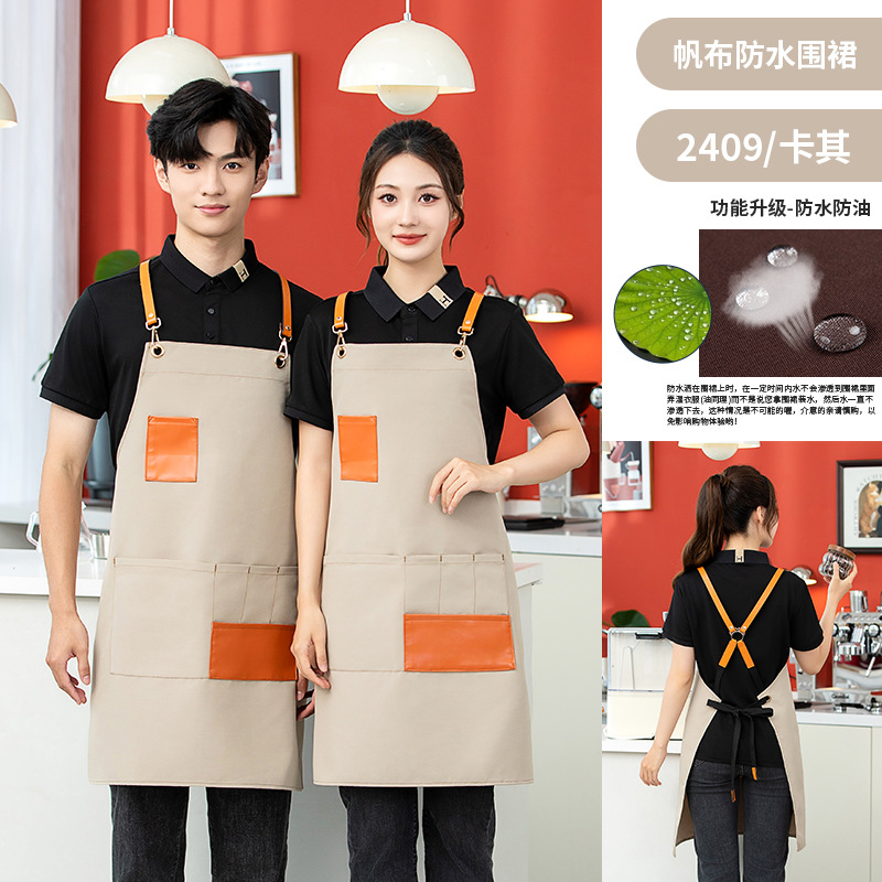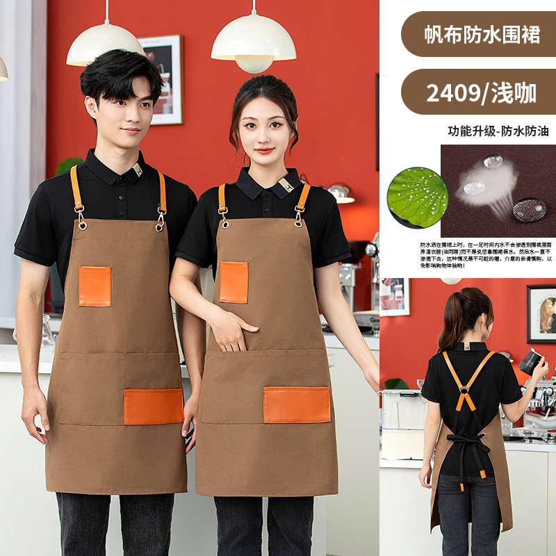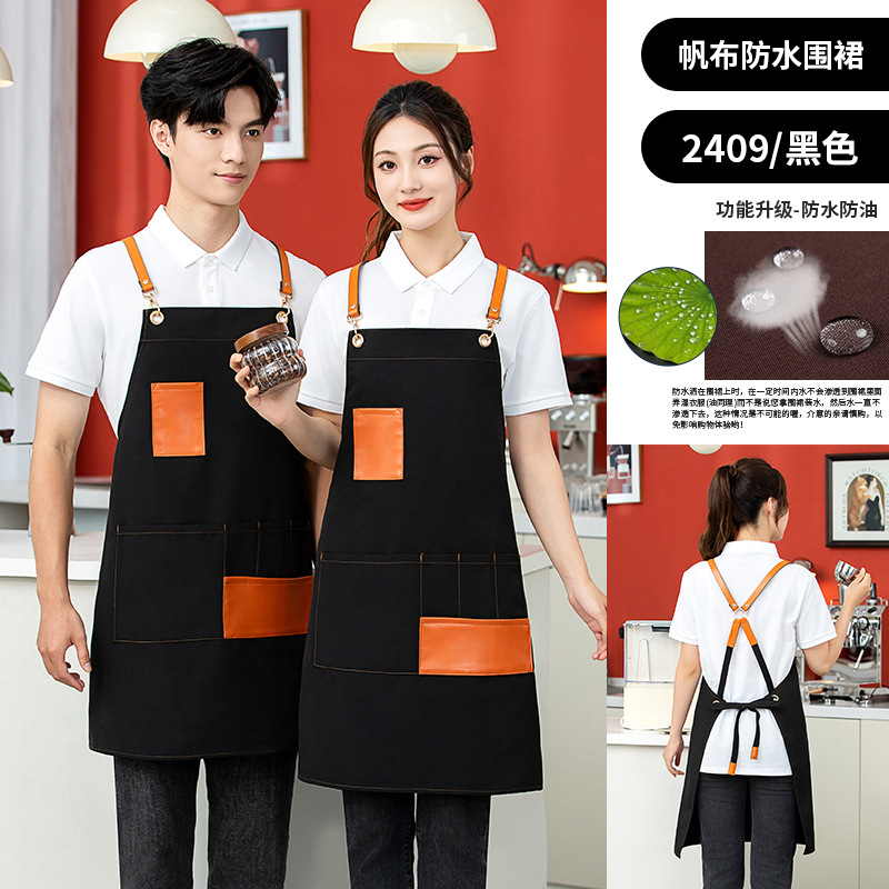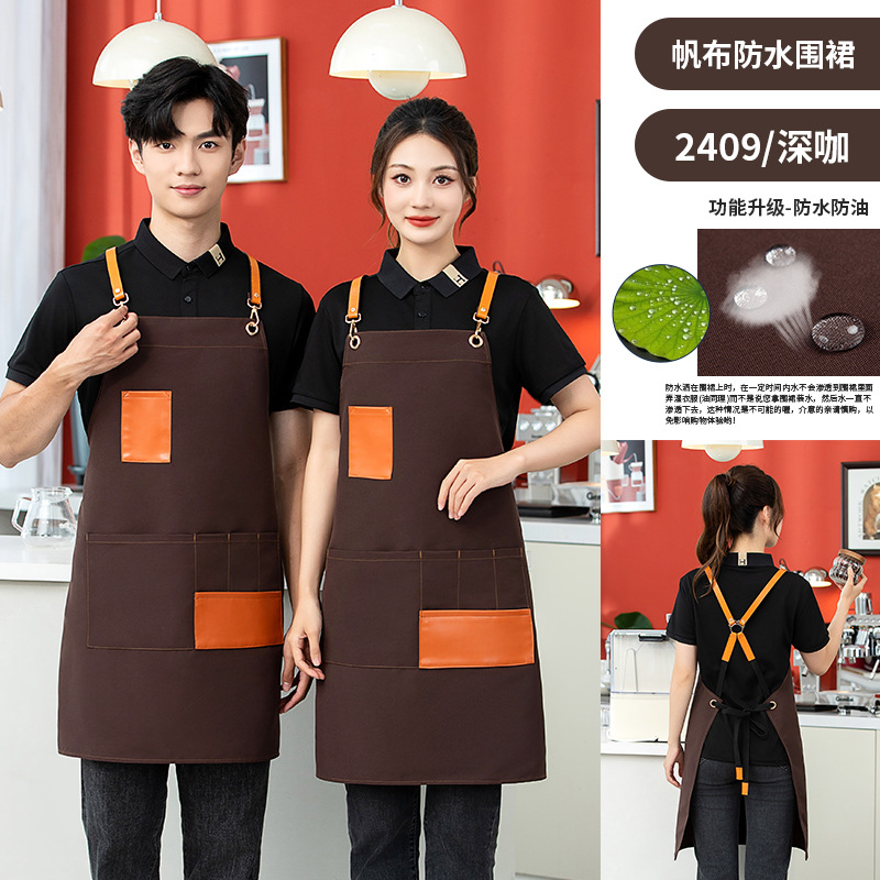 남녀공용 프린트 앞치마, 카페, 밀크티 가게 작업복, 웨이터용 캔버스 방수 민소매 방수 내마모성