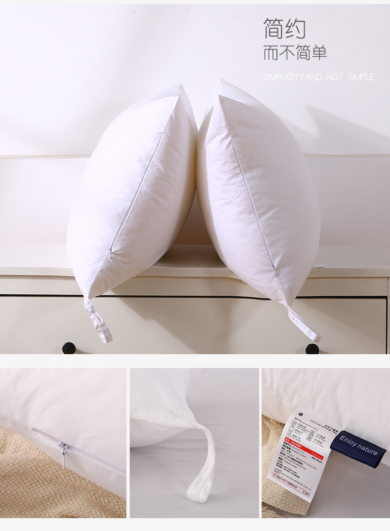 순면 깃털 베개 베개심 가정용 목보호 베개 싱글 호텔 베개 단품 세탁 가능 동일 모델 경추 베개