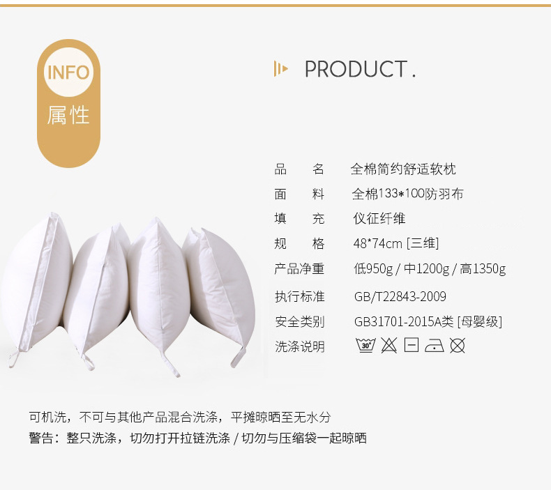• 순면 Yizheng Mian 호텔 베개 - 입체 높은 베개 (클래스 A 표준)