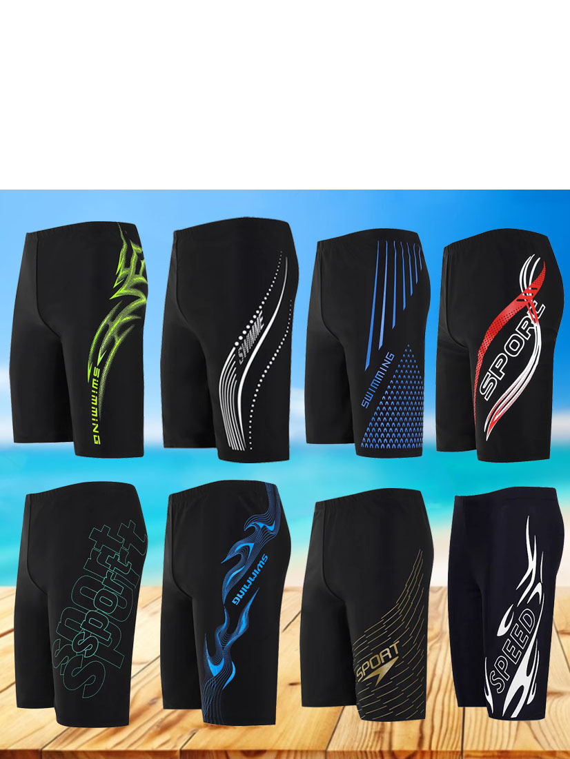 남자 수영 트렁크 도매 긴 다리 7 포인트 바지 해변 온천 수영 트렁크 복서 수영 트렁크 탄성 소프트 오프셋 인쇄 수영 트렁크