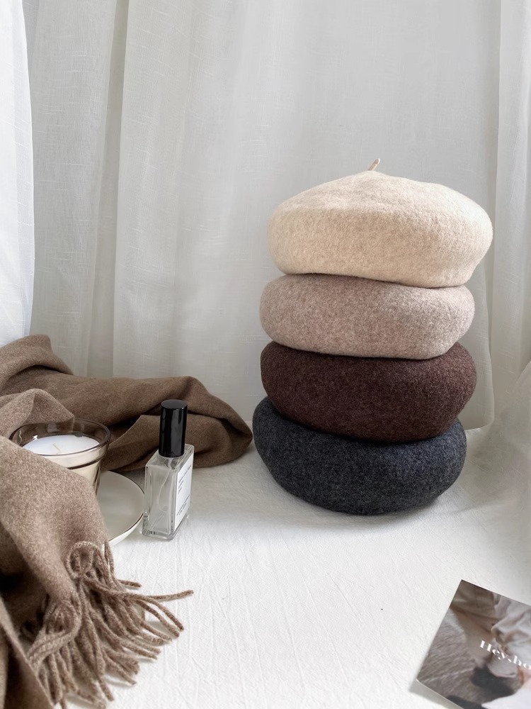 한국식 마이크로 컬링 양모 베레 여성용 대형 일본식 캐주얼 올매치 얼굴 표시 작은 버드 캡스토어 가기