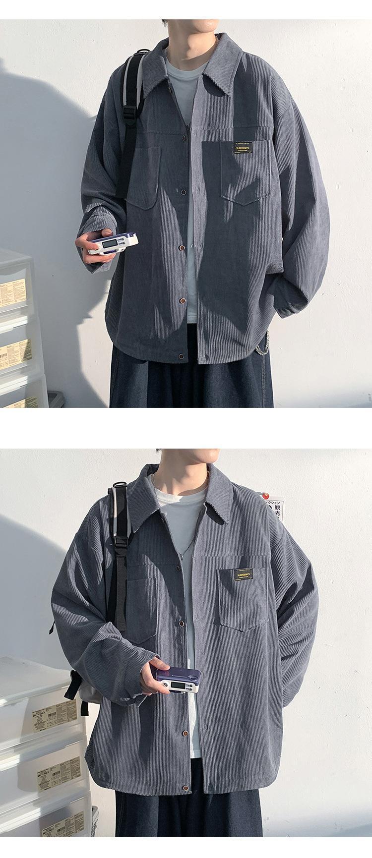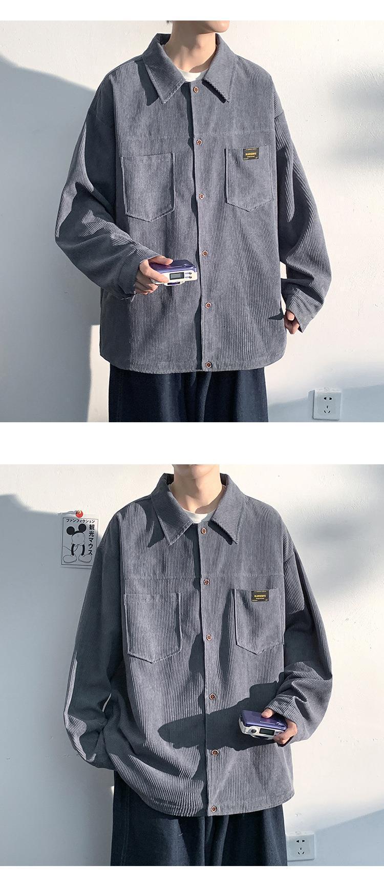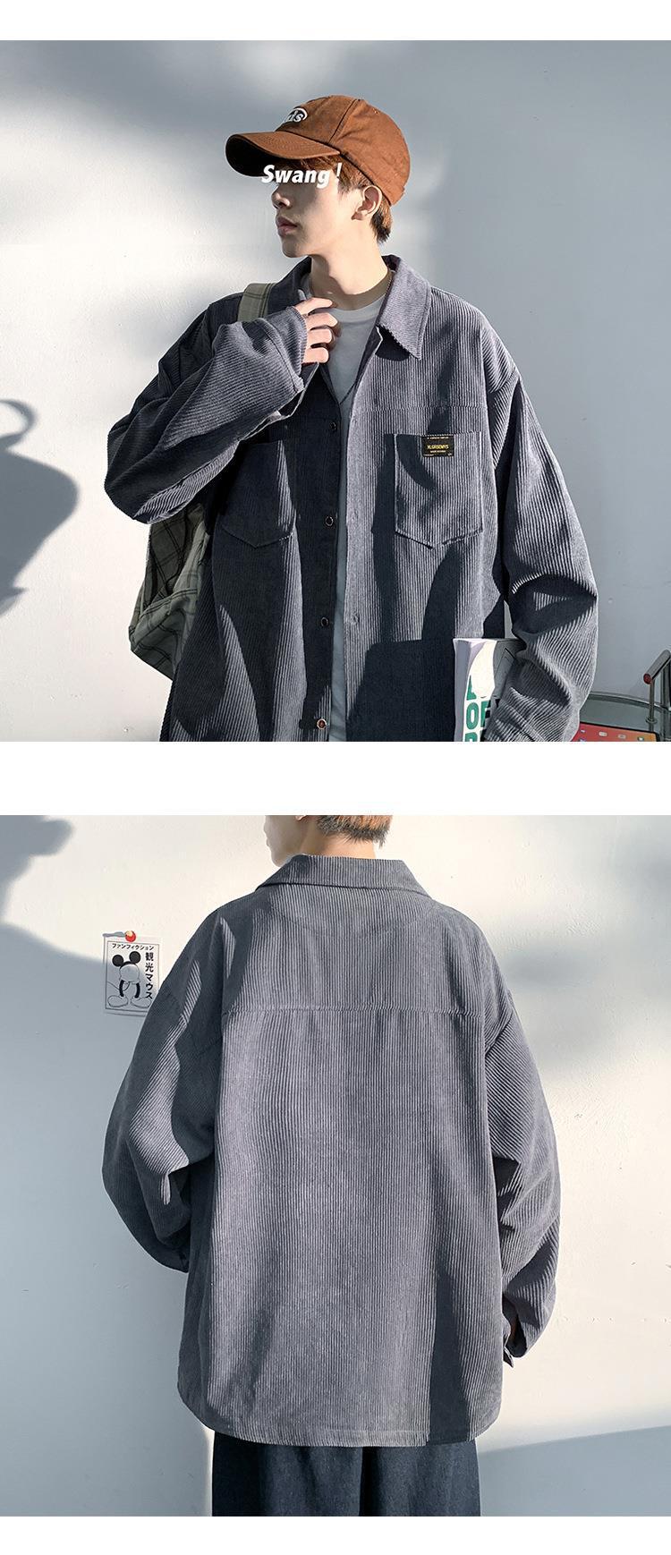 고급 코듀로이 셔츠 남자의 봄과 가을 패션 브랜드 홍콩 스타일 잘 생긴 긴팔 셔츠 일본 빈티지 재킷스토어 가기