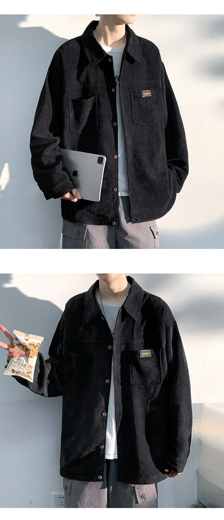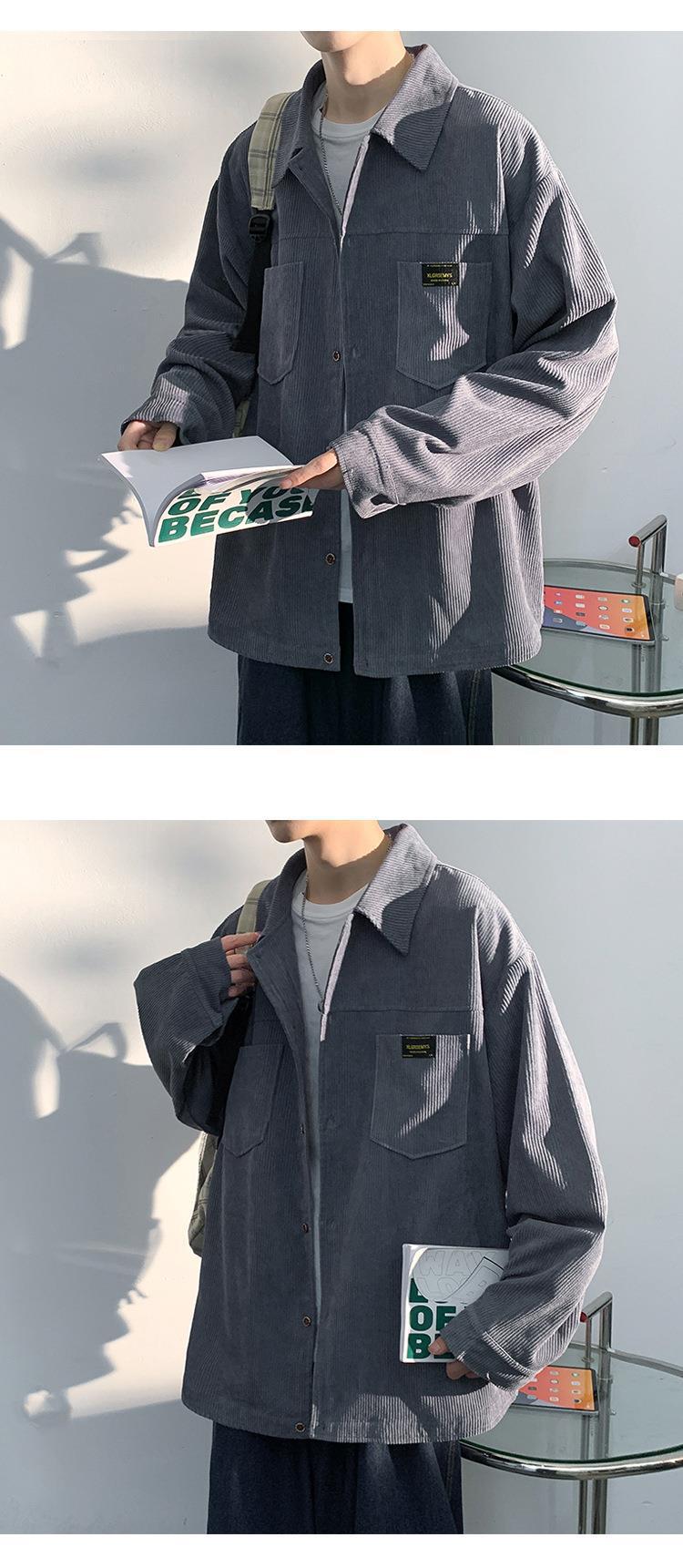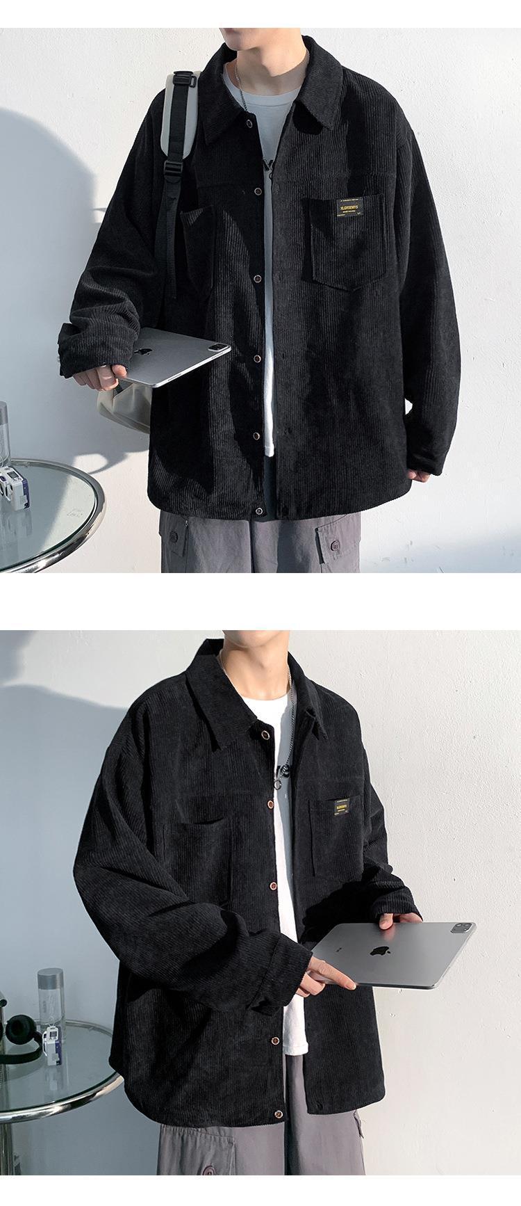 고급 코듀로이 셔츠 남자의 봄과 가을 패션 브랜드 홍콩 스타일 잘 생긴 긴팔 셔츠 일본 빈티지 재킷스토어 가기