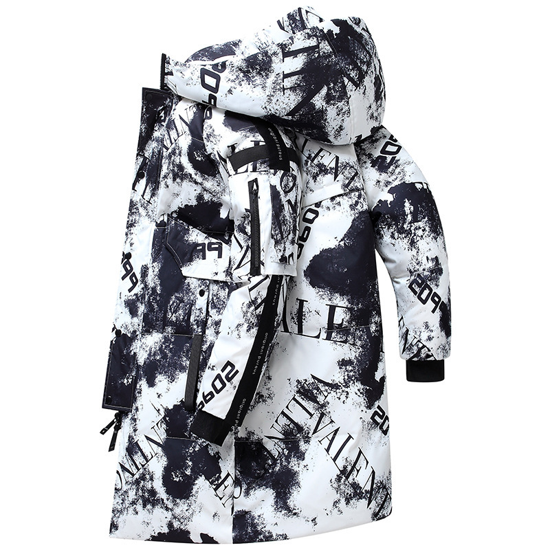 국경 간 겨울 남자 후드 중장 코트 트렌디 두꺼운 겨울 화이트 덕 다운 자켓 남성과 청소년을위한 올 매치