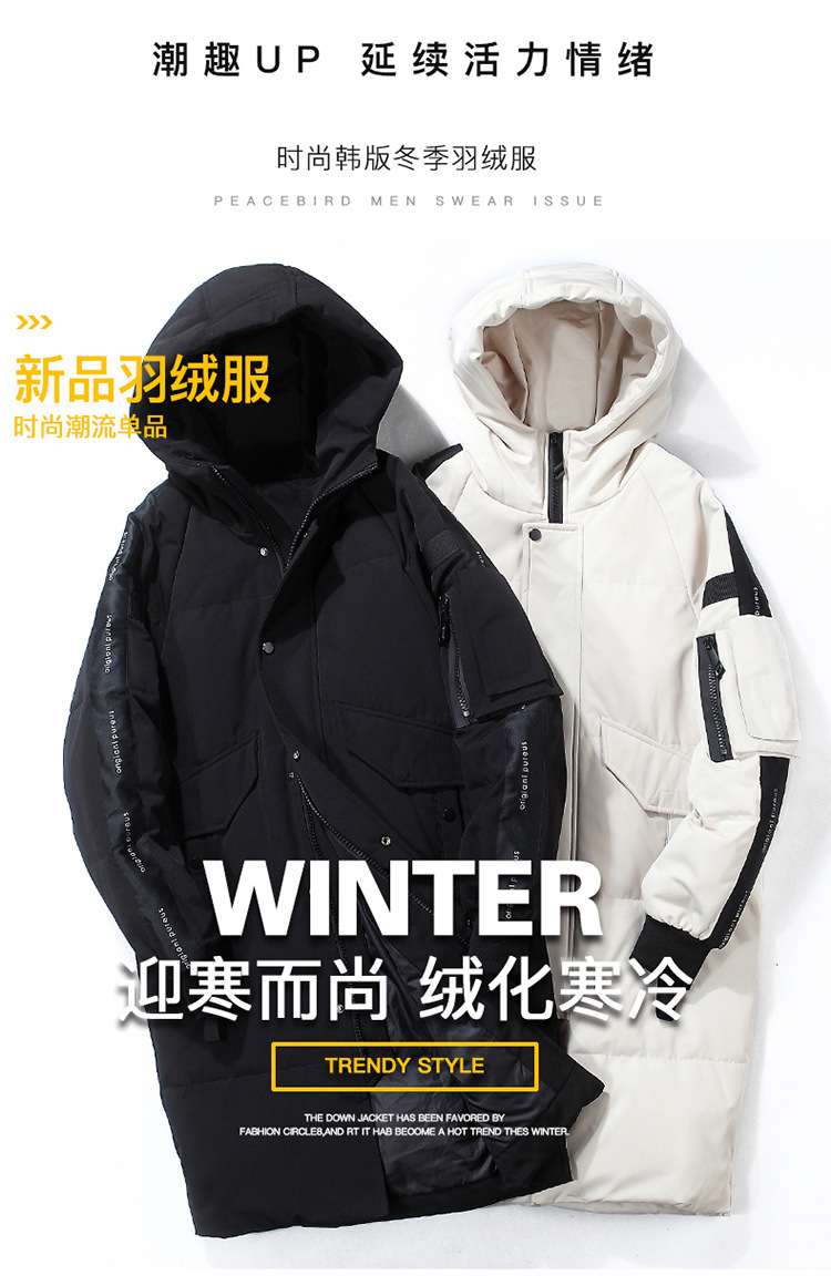국경 간 겨울 남자 후드 중장 코트 트렌디 두꺼운 겨울 화이트 덕 다운 자켓 남성과 청소년을위한 올 매치스토어 가기