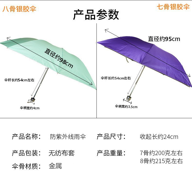 7단 실버 글로시 우산, 양산, 자외선 차단 우산, 비와 햇빛 모두 사용 가능, 광고용 선물 우산, 로고 인쇄, 공장 도매, 방풍