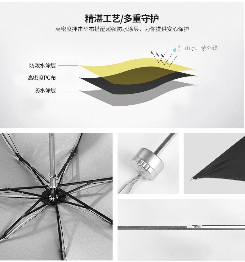 7단 실버 글로시 우산, 양산, 자외선 차단 우산, 비와 햇빛 모두 사용 가능, 광고용 선물 우산, 로고 인쇄, 공장 도매, 방풍스토어 가기