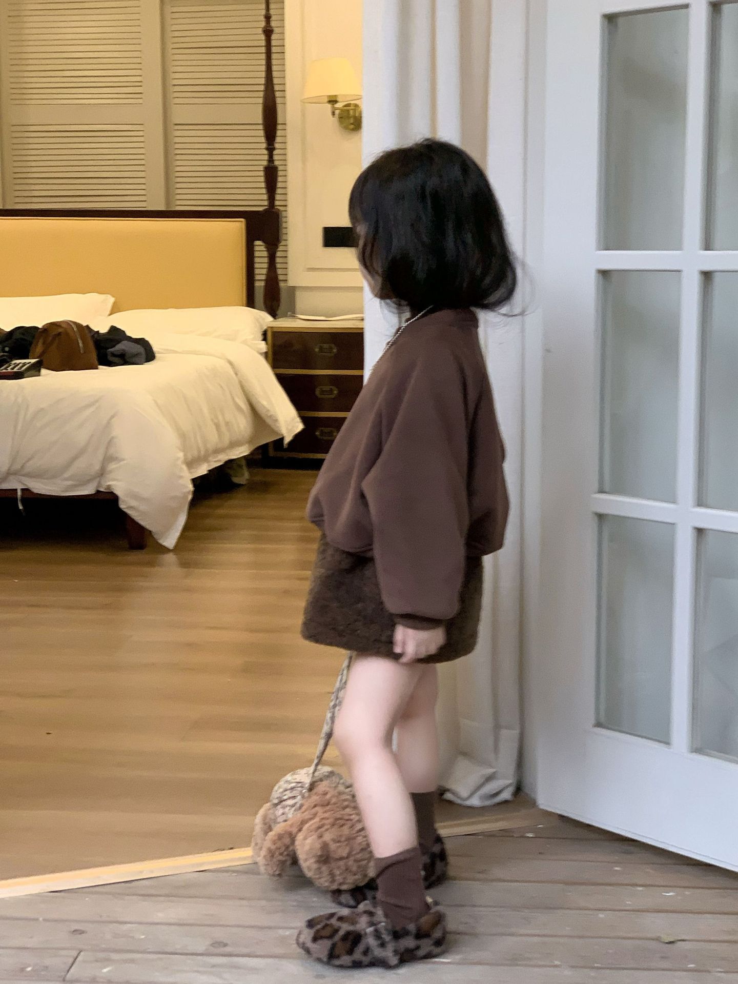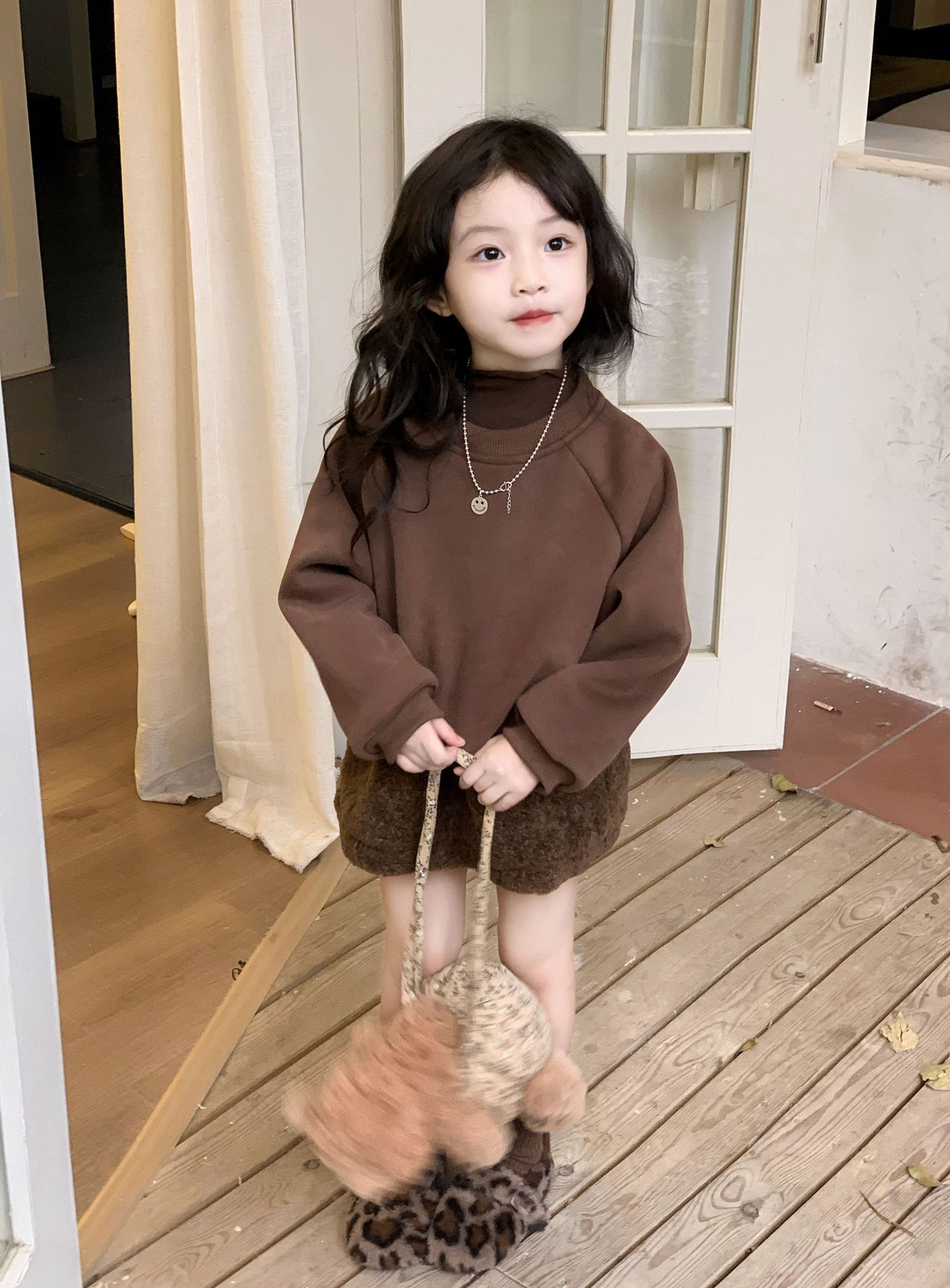 여자 스웨터 가을과 겨울 새 기모 느슨한 박쥐 소매 짧은 최고 다크 브라운 단색 캐주얼 두꺼운 긴 소매 스웨터