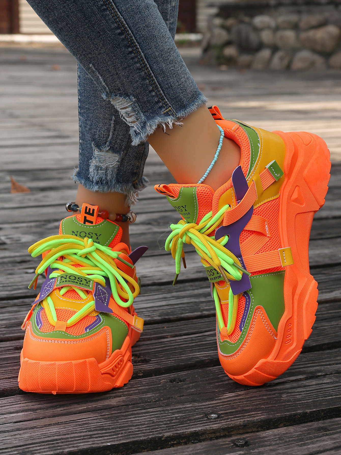 2024 년 여름 새로운 컬러 매칭 레이스 업 두꺼운 토르 신발 여성 인터넷 유명 포레스트 검프 신발 여학생 캐주얼 운동화스토어 가기