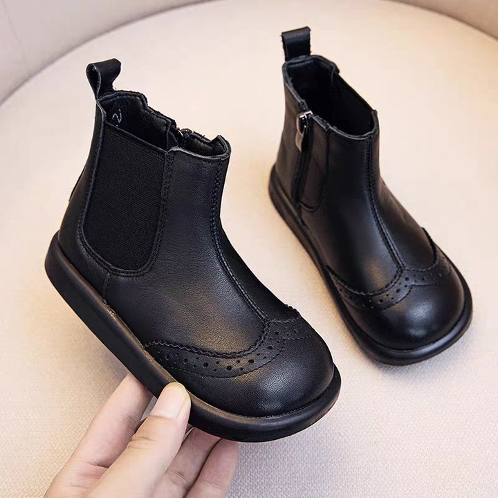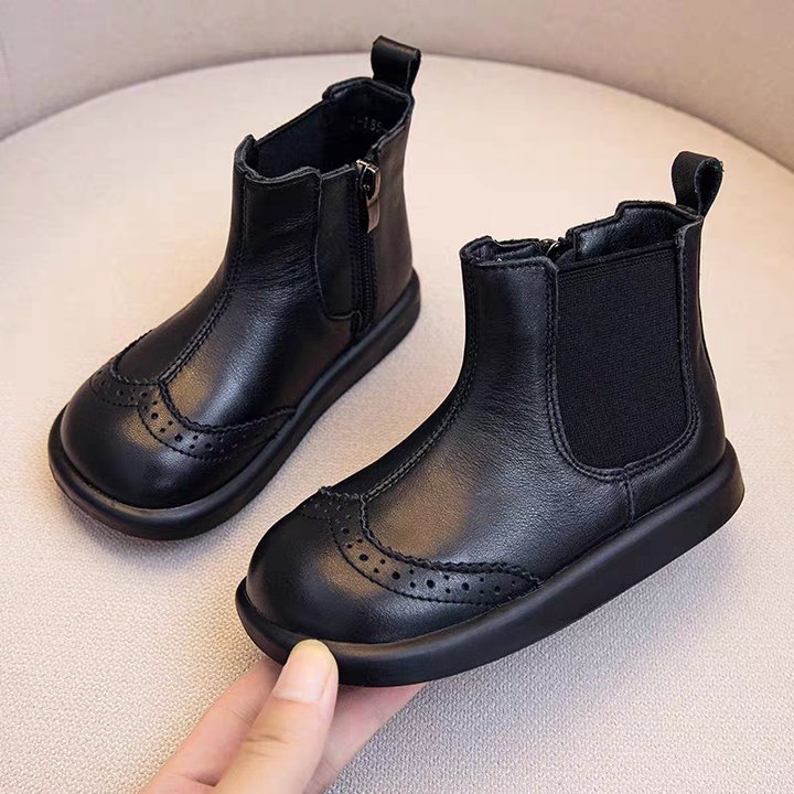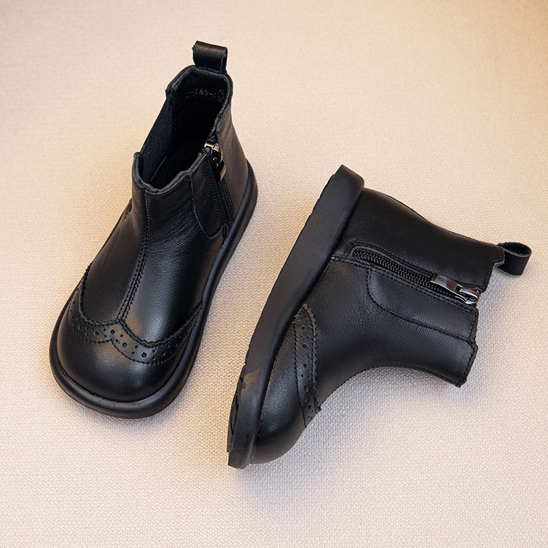 가을과 겨울 빈티지 소녀 편안한 부드러운 하단 라이트 짧은 부츠 패션 소년 패션 부츠 베이비 사이드 지퍼 가죽 부츠