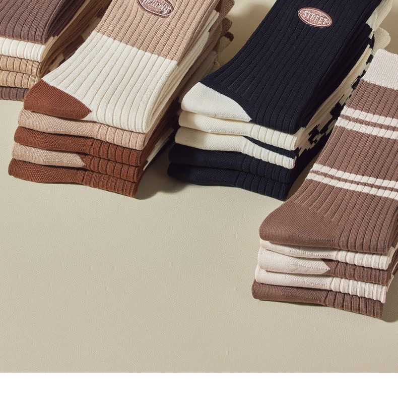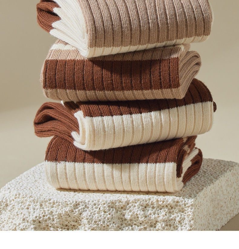주지 양말 여성의 긴 양말 가을과 겨울 Maillard 바람 숙녀 조커 줄무늬 더미 양말 도매스토어 가기
