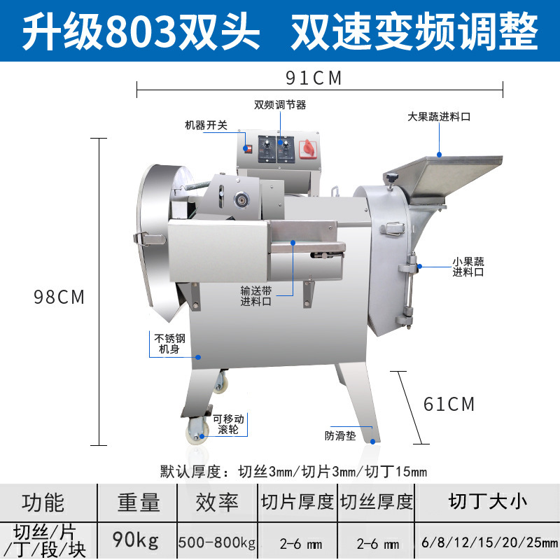 • 803 더블 헤드 주파수 변환 이중 조정 야채 절단기