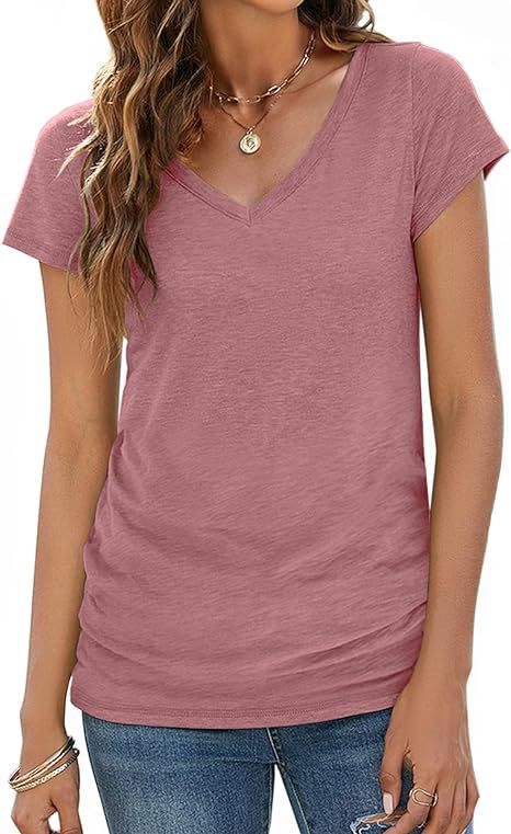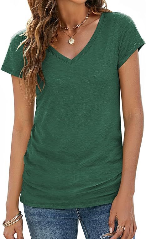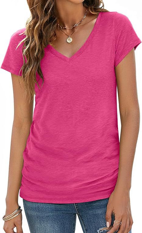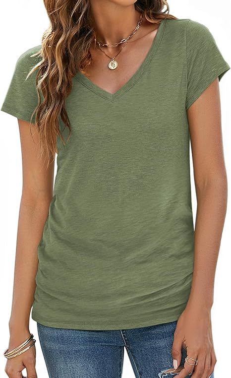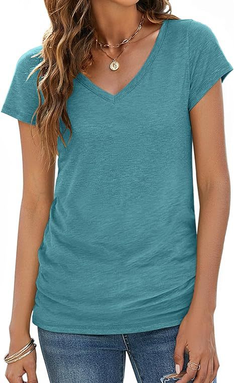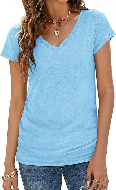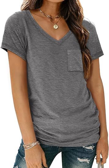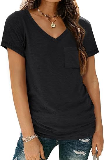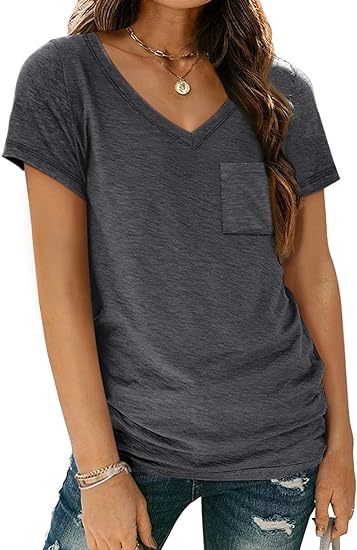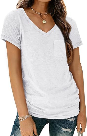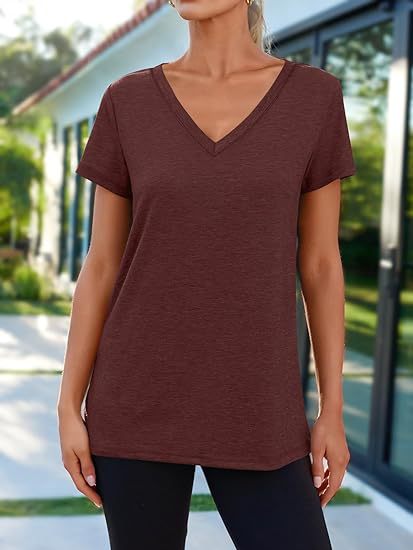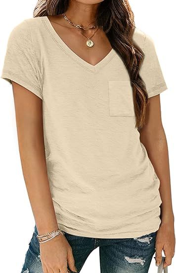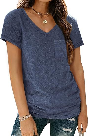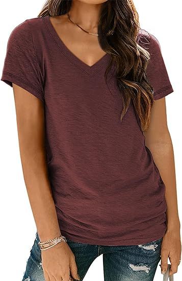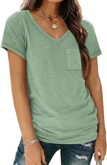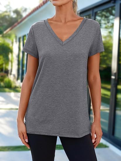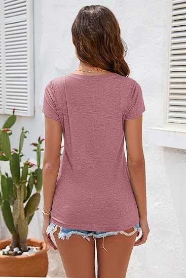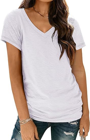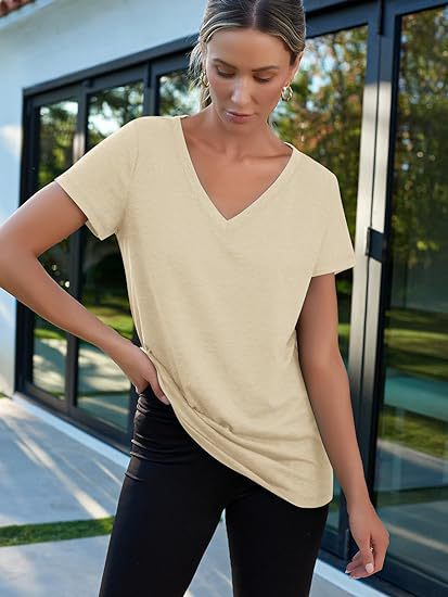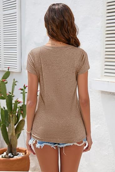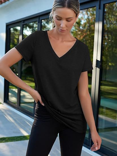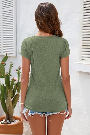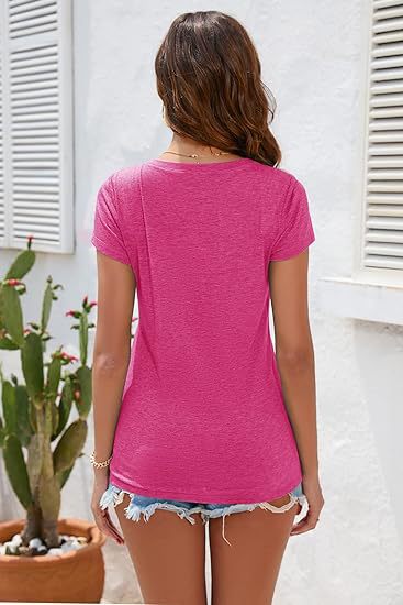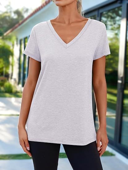 2024 아마존 새로운 유럽과 미국의 캐주얼 V-넥 여성 반팔 여름 티셔츠 최고 패션 캐주얼스토어 가기