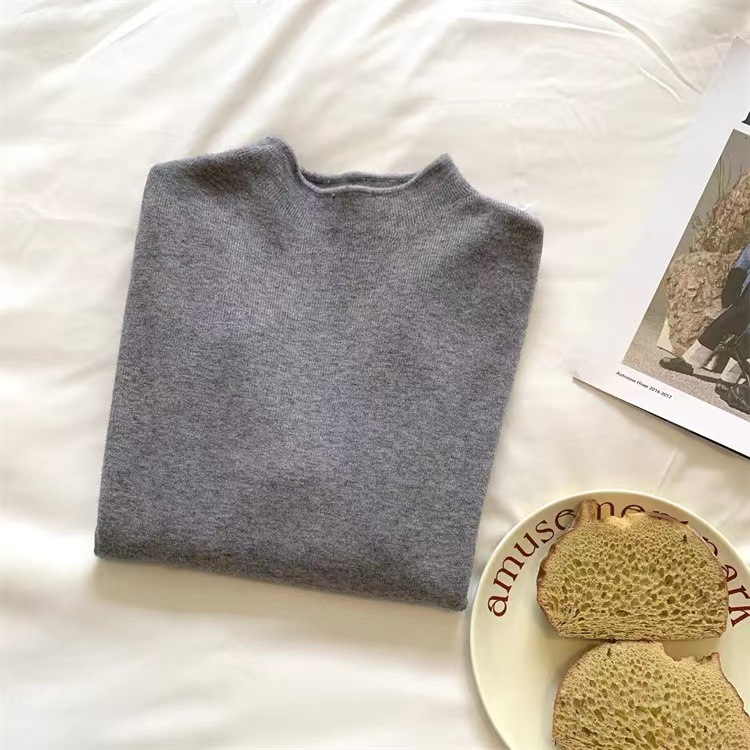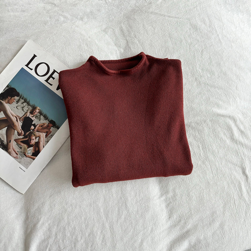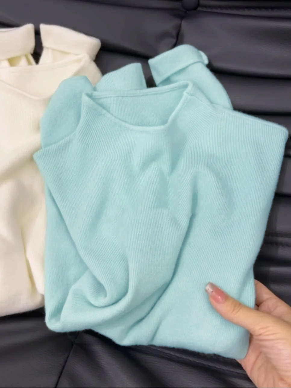 여성용 오리지널 고품질 스몰 스탠드 칼라 베이스 레이어 셔츠, 2025 가을 겨울 심플 이너웨어 탑, 부드럽고 촉감이 좋은 니트 스웨터스토어 가기